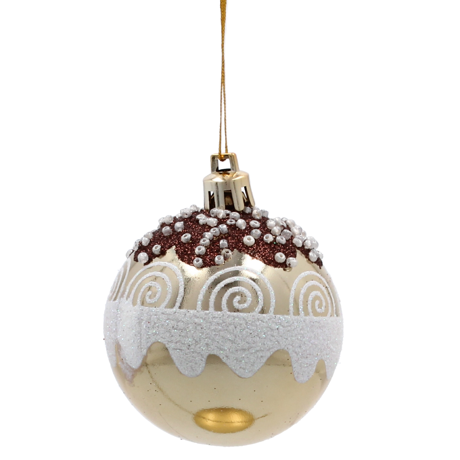 Popestrite svojo jelko z elegantnim kompletom zlatih krogel premera 6 cm. Set vsebuje 8 kosov z različnimi vzorci za harmonično okrasitev, izdelanih iz netršečega plastika za varnost in vzdržljivost. Vsak okrasek ima vrvico za enostavno obešanje, zato je okraševanje hitro in udobno.