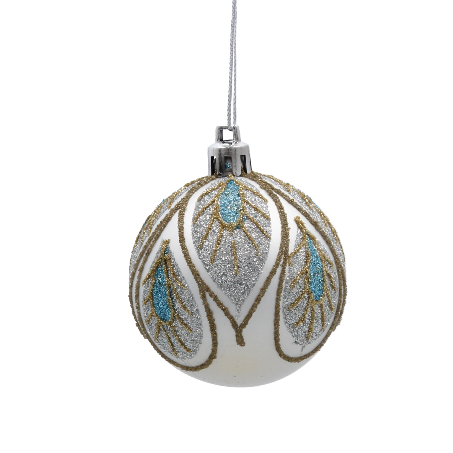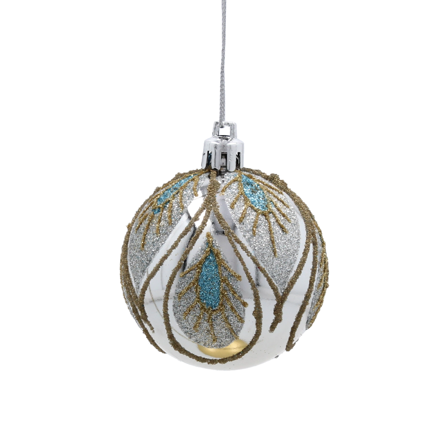 Vsaka krogla prinaša drugačen dekor, zato boste na drevesu ustvarili dinamičen, a slogovno enoten videz brez zapletenega kombiniranja.
