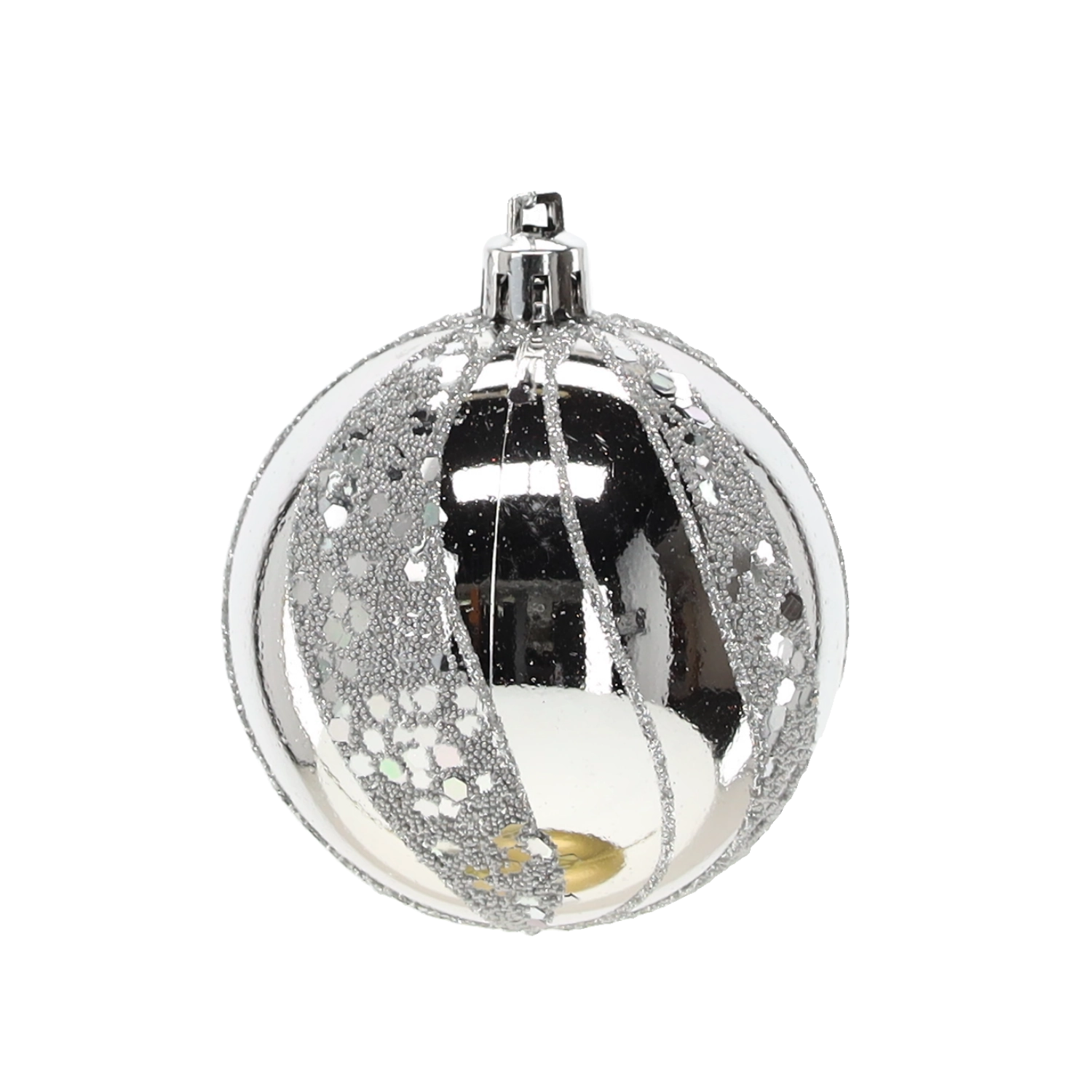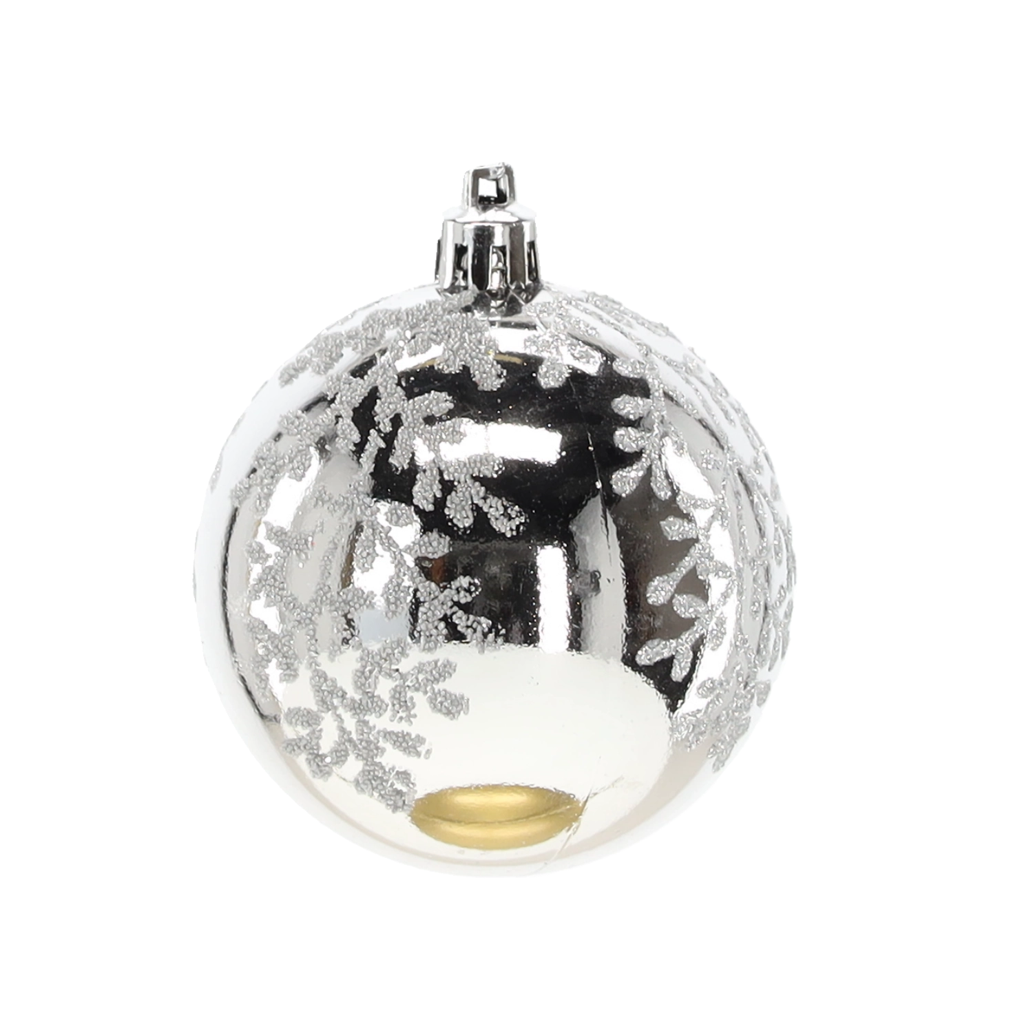 Izpopolnite svoj interier s setom 6 srebrnih krogel, ki z različnimi vzorci in površinskimi obdelavami vnesejo v dekoracijo globino in dinamiko. Univerzalna srebrna barva se zlahka kombinira s tradicionalnimi in sodobnimi okraski ter lepo odbija svetlobo.