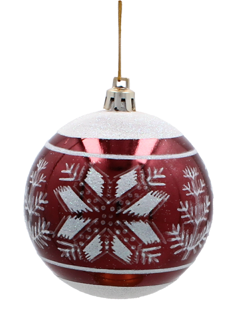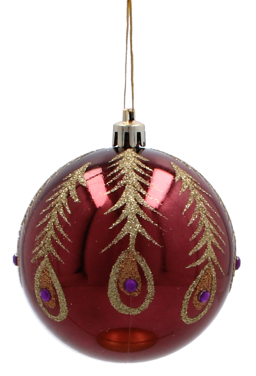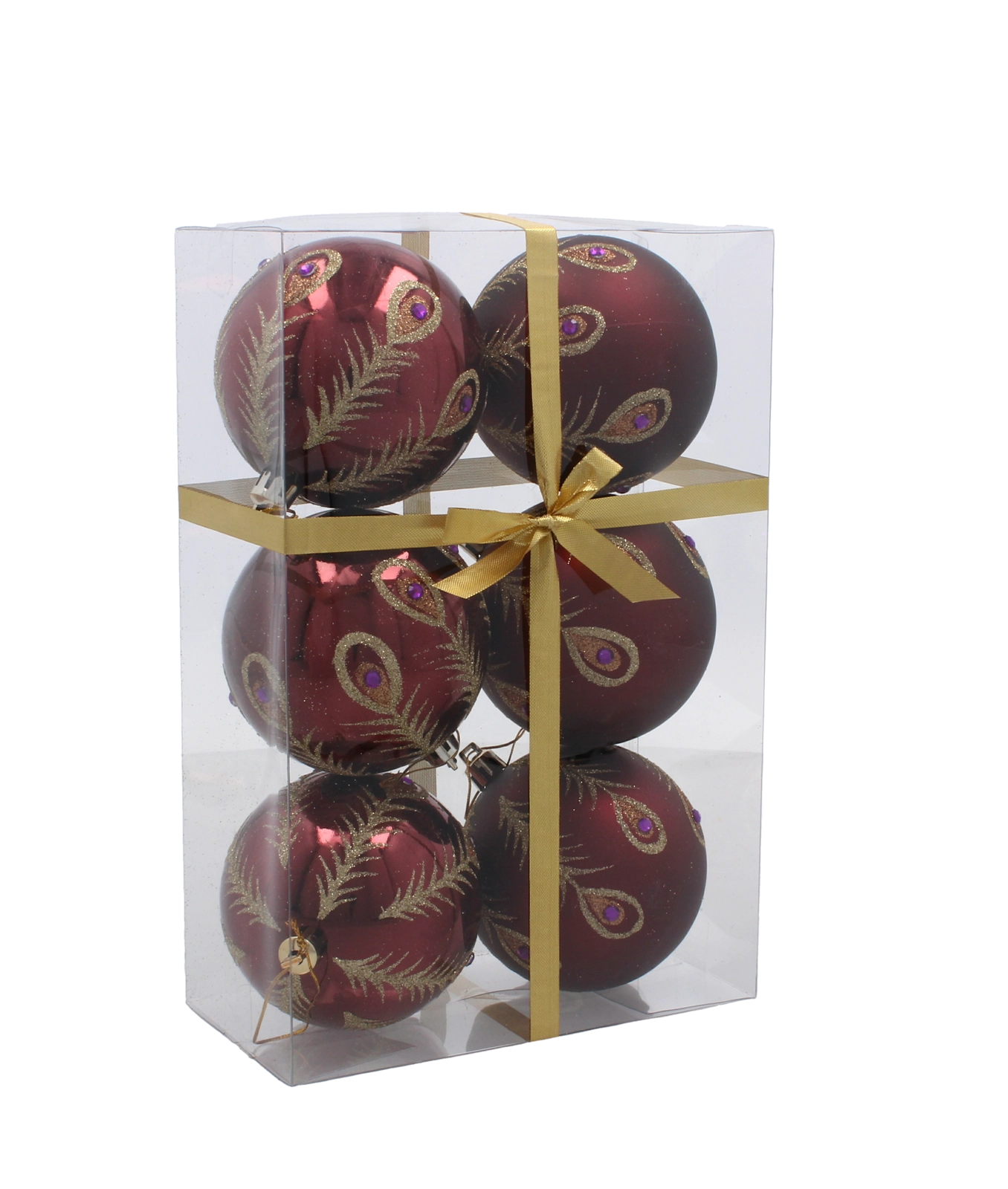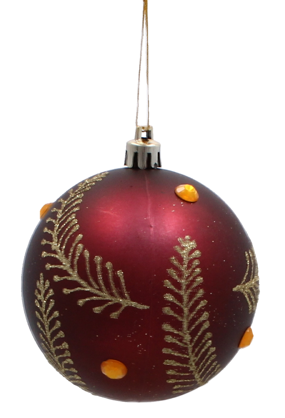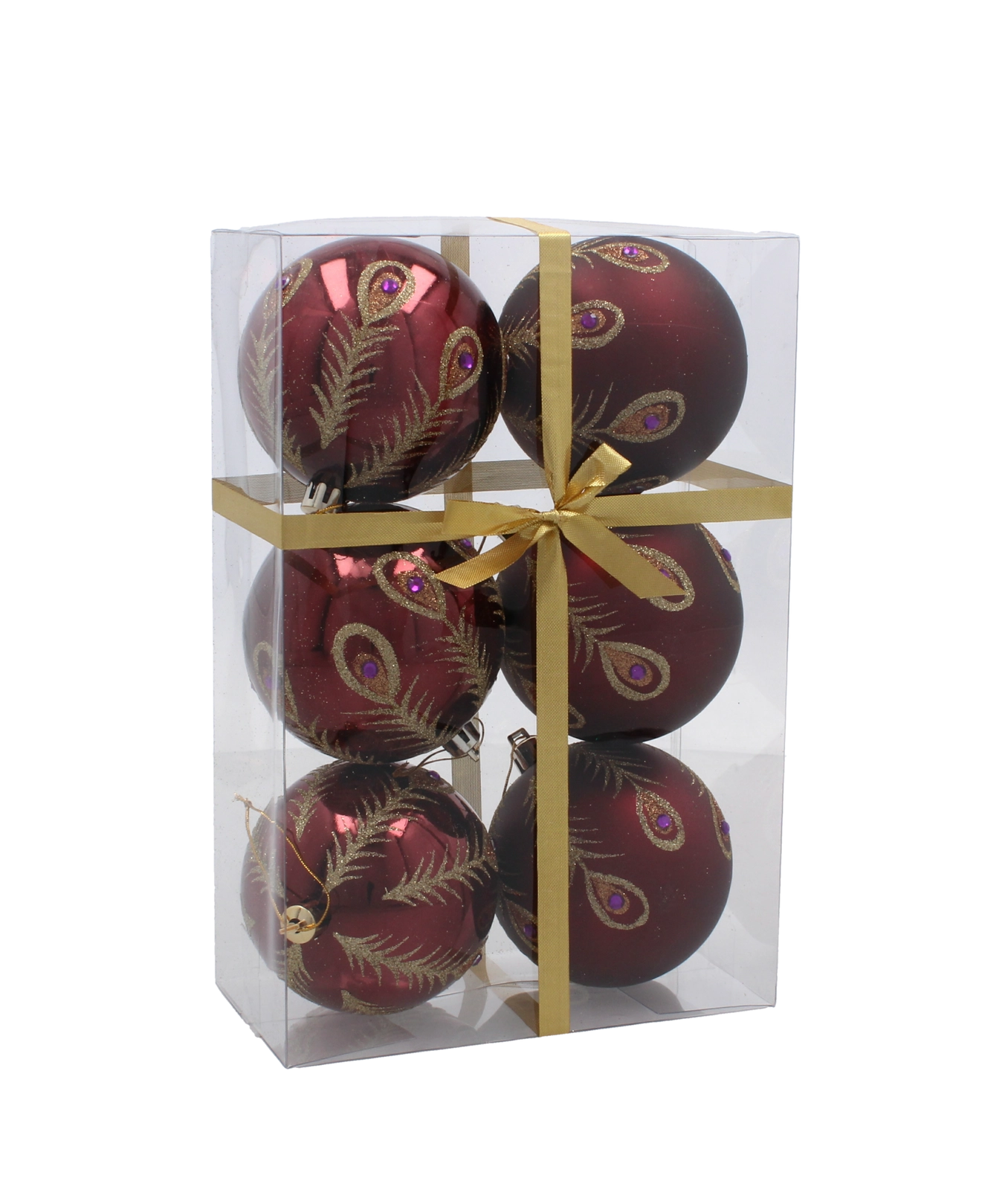 Premer 8 cm in enoten bordo ton zagotavljata harmonično dekoracijo, ki izstopa na vsakem božičnem drevescu.