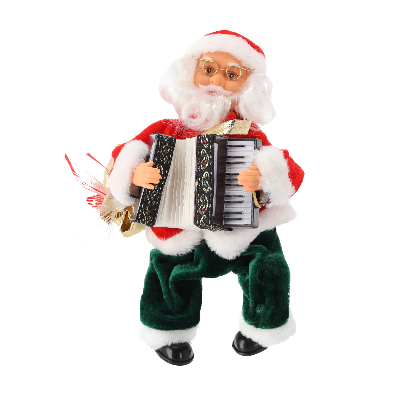 Očarljiva božična figurica BOŽIČKA v tradicionalnem rdečem plašču in zelenih hlačah spremeni vsak interier v praznično sceno. Božiček predvaja glasbo, premika harmoniko in njegova LED vreča nežno sveti, zato ustvari prijetno vzdušje doma ali v pisarni.