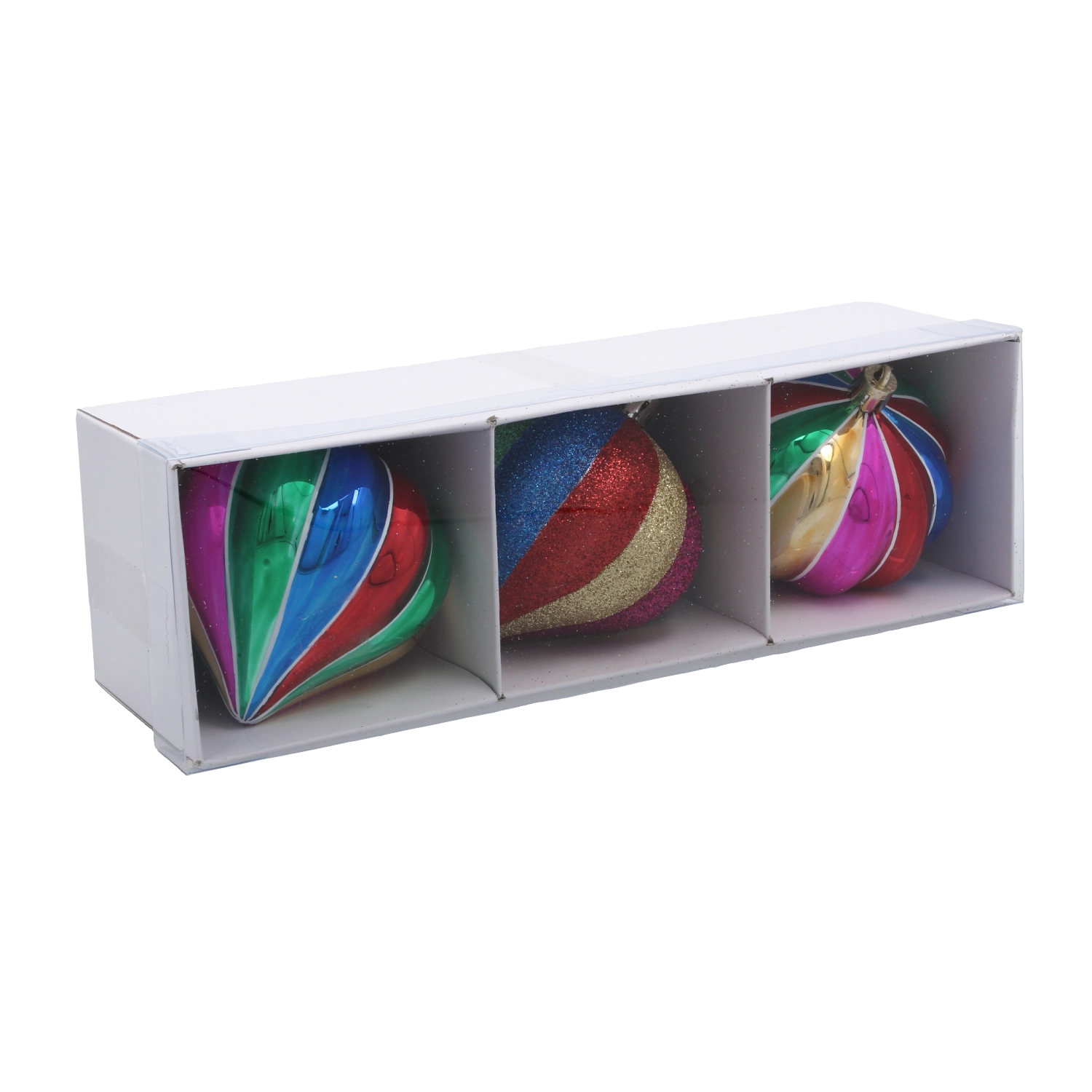 Okraski so lično pakirani po treh kosih za enostavno shranjevanje, obdarovanje in usklajen videz dekoracije.