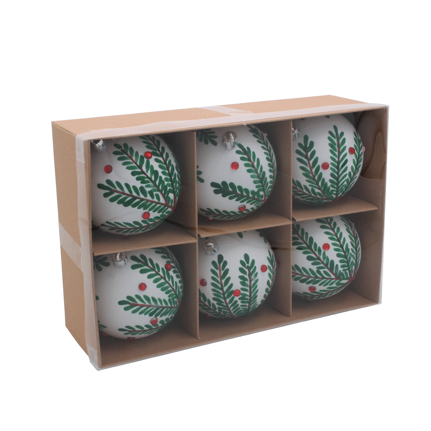 Dodajte svoji smreki pridih elegance s setom šestih belih božičnih krogel s premerom 8 cm. Vsak okrasek krasijo nežne vejice za naraven in prefinjen videz. Zahvaljujoč minimalističnemu dizajnu jih zlahka uskladite s tradicionalnim in modernim okrasjem. Lahka in trpežna zasnova zagotavlja preprosto rokovanje in dolgo življenjsko dobo.