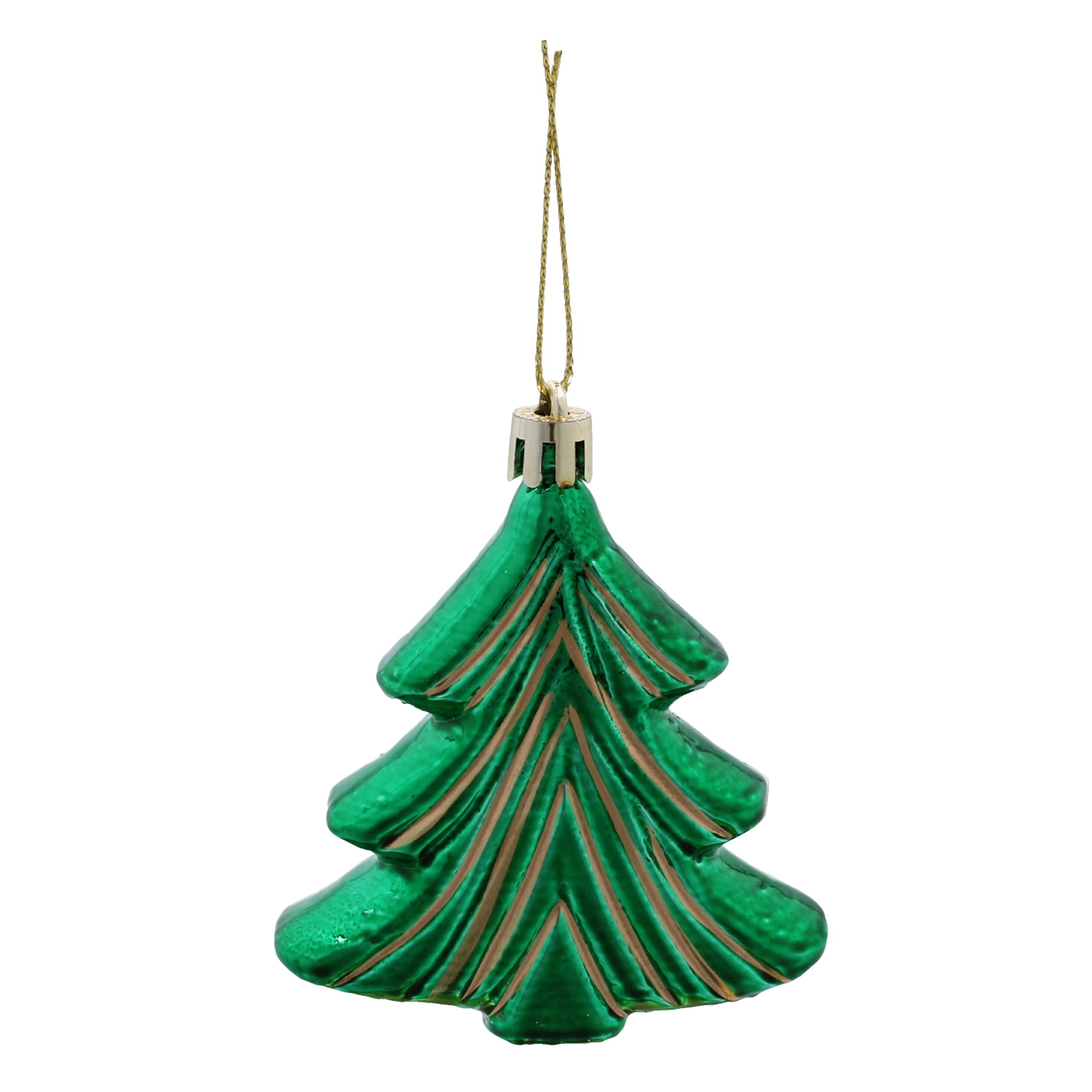 Okraski v obliki smrečice z bleščečo površino in zlatimi poudarki vašemu drevesu dodajo klasičen praznični pridih ter takoj pritegnejo pozornost.