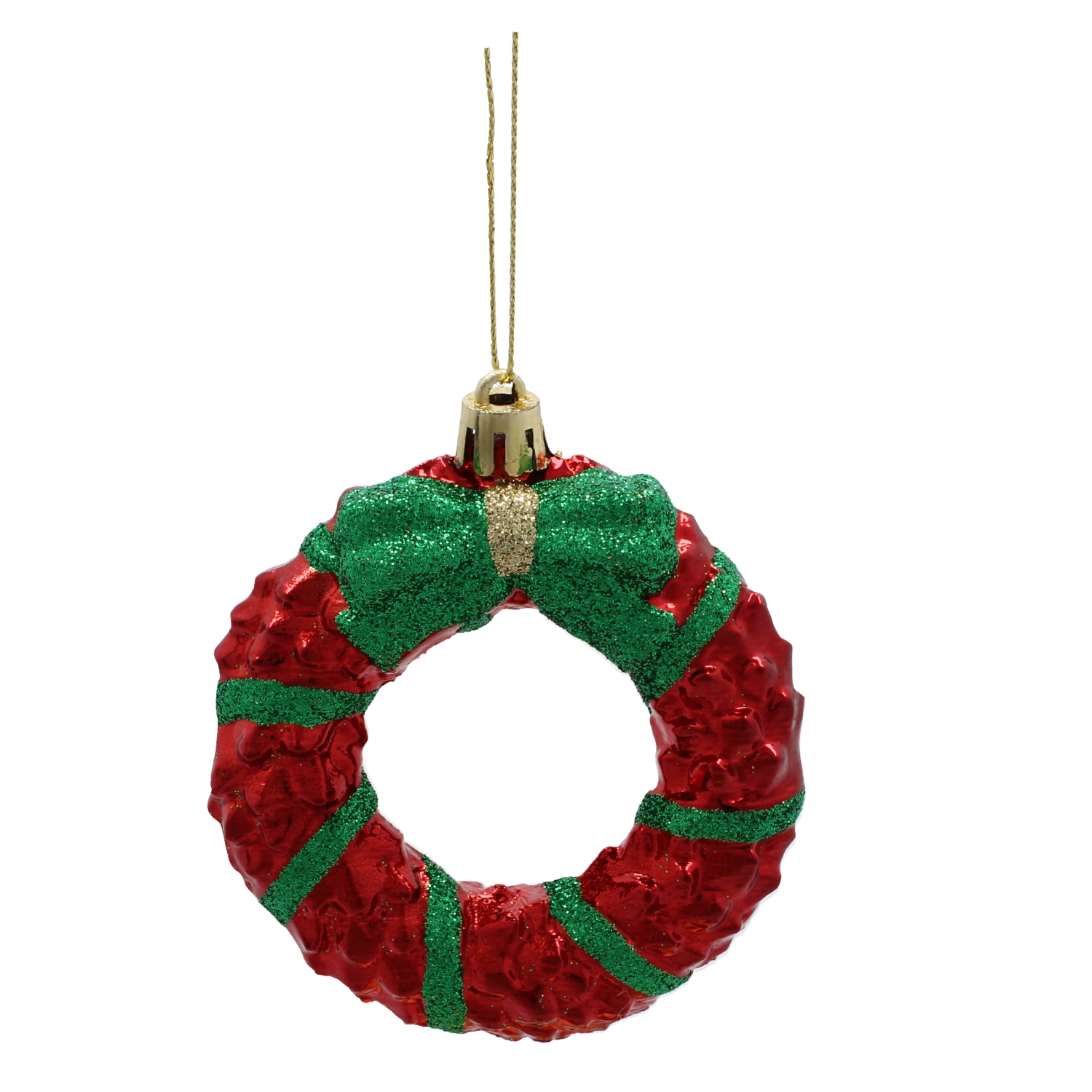 Venčki v rdeče-zeleni izvedbi z bleščastimi črtami in pentljo v dekor vnesejo izrazit barvni poudarek in praznično vzdušje.