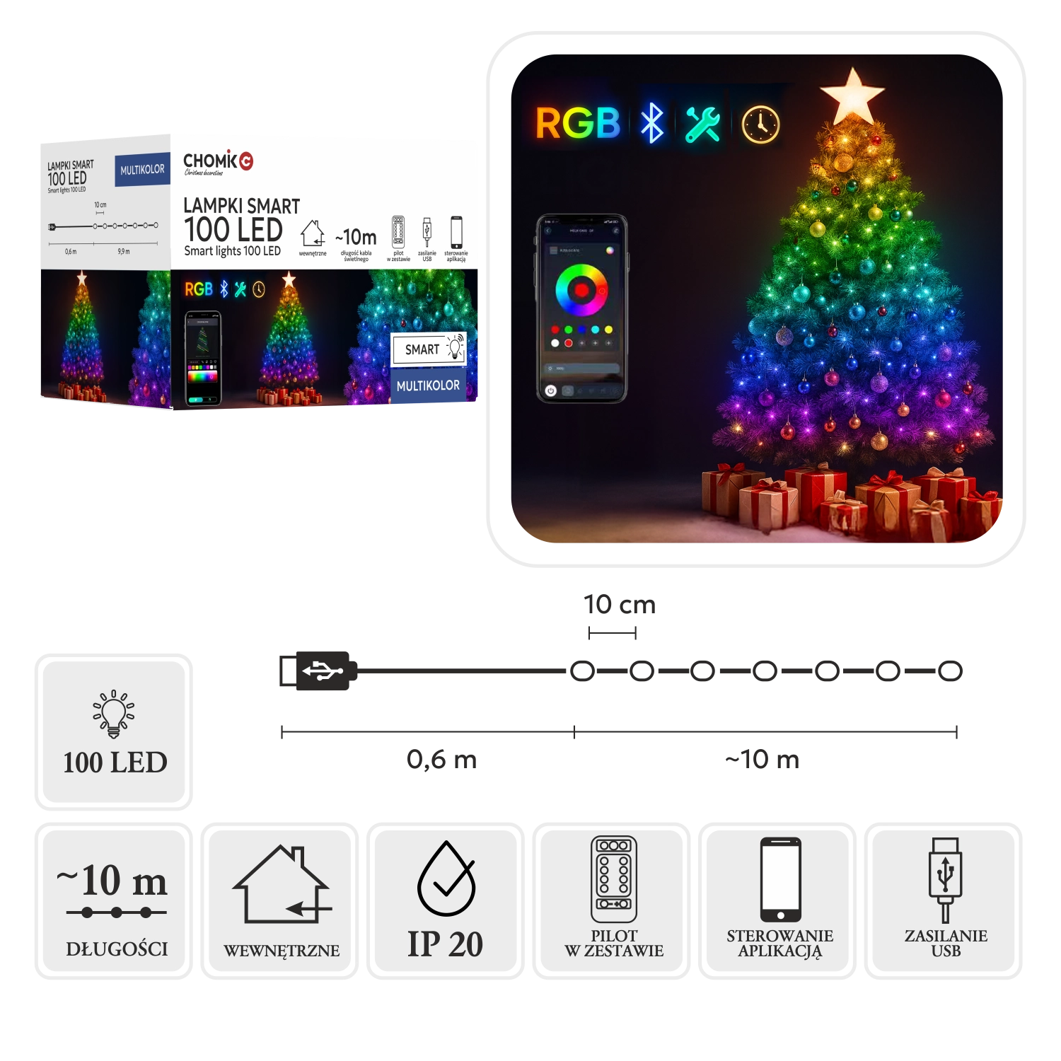 Pametna verižna osvetlitev s 100 LED RGB osvetli dnevno sobo, spalnico ali otroško sobo. Prek aplikacije ZENGGE ali priloženega upravljalnika preprosto prilagodite barve, načine in intenziteto. Z USB napajanjem jo priključite na polnilec, napajalnik (powerbank) ali USB priključek TV.