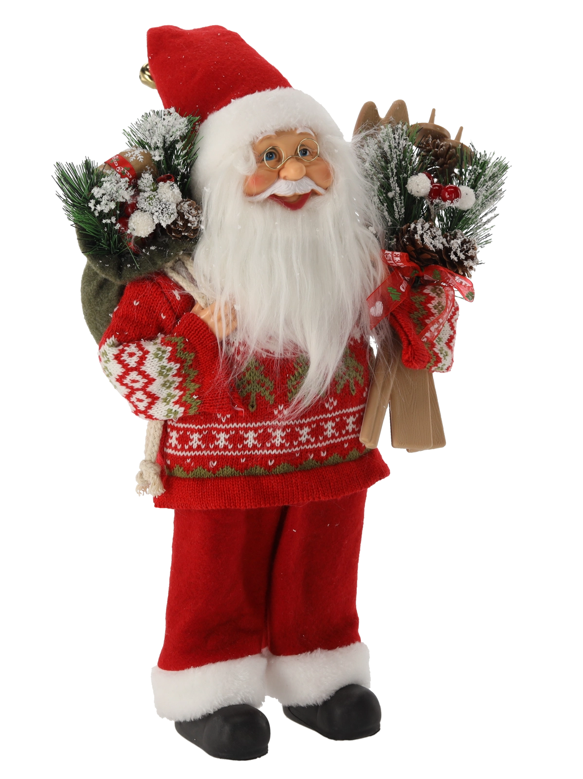 Ta dekorativna figurica Božička v rdečem plašču in s smučmi je čudovit poudarek za vsak praznični interier. Realistična izvedba in poudarek na detajlih jo naredita vpadljiv element, ki bo razveselil tako otroke kot odrasle. Zaradi višine 40 cm lepo izstopa, hkrati pa jo je enostavno postaviti na polico, mizo ali pod božično drevo.