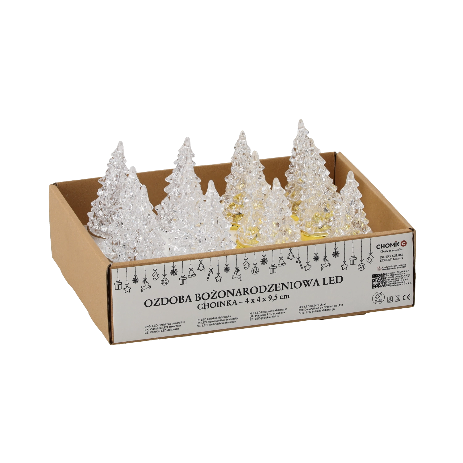 Prozorno, fasetirano drevesce razprši svetlobo v vse smeri in ustvari očarljivo igro barv za prijetno praznično vzdušje.