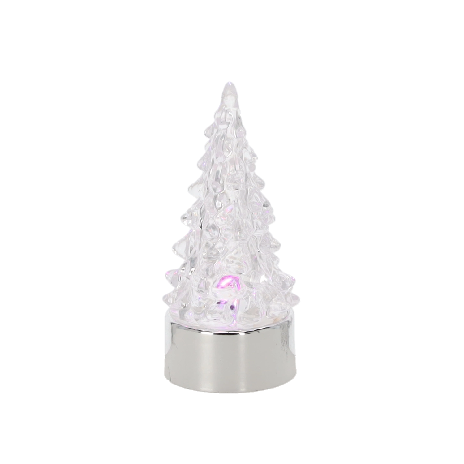 Stilska svetleča dekoracija, ki nemudoma pričara čarobno božično vzdušje. Prozorna, fasetirana izvedba drevesca lepo razprši spreminjajoče se barve, kovinski podstavek pa celotni dekoraciji doda premium videz. Zahvaljujoč napajanju na baterije jo lahko postavite kamor koli brez kablov.