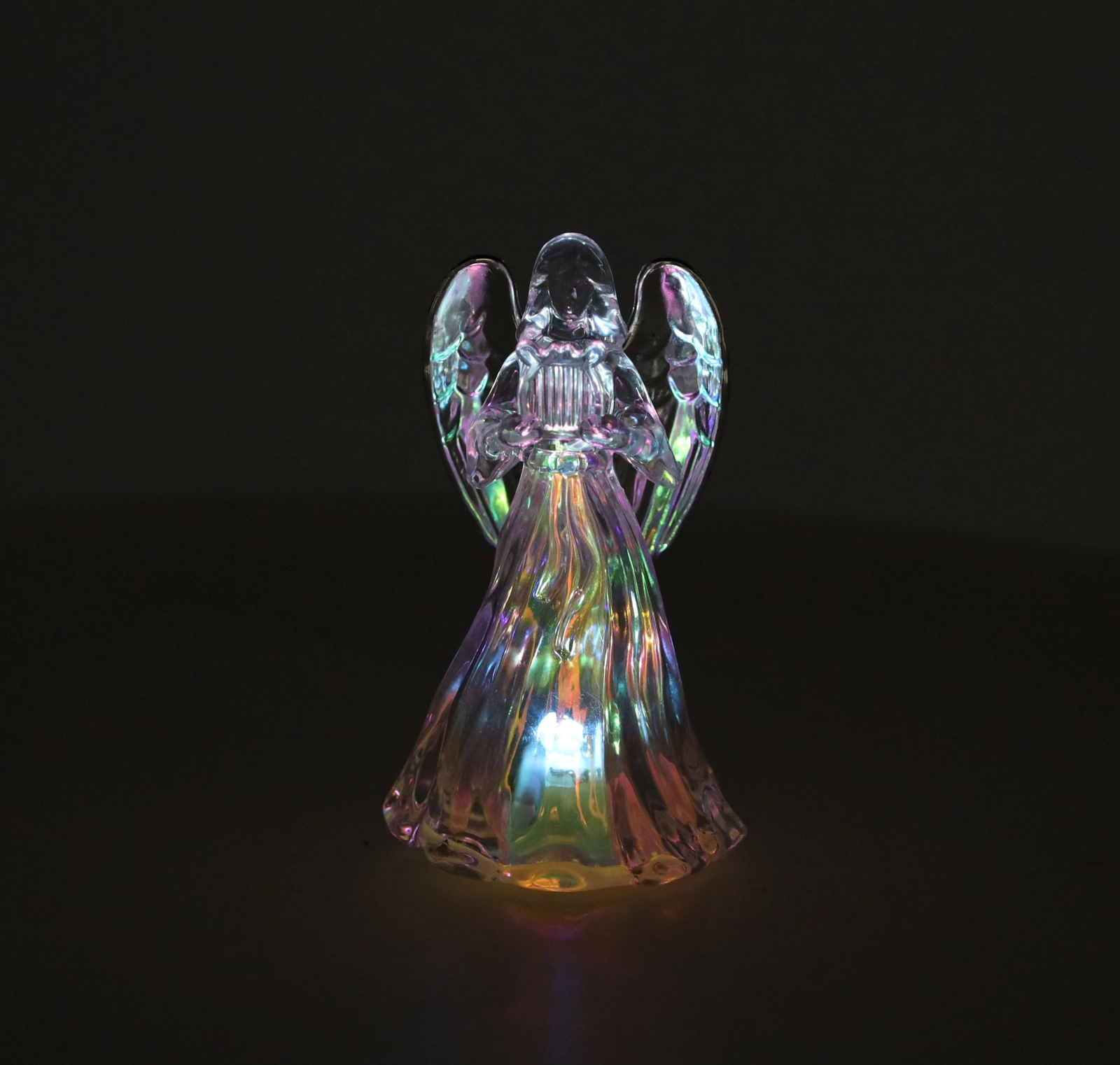 LED osvetlitev oddaja čisto hladno belo svetlobo, ki poudari detajle angela in doda božični dekoraciji mirno, elegantno vzdušje.