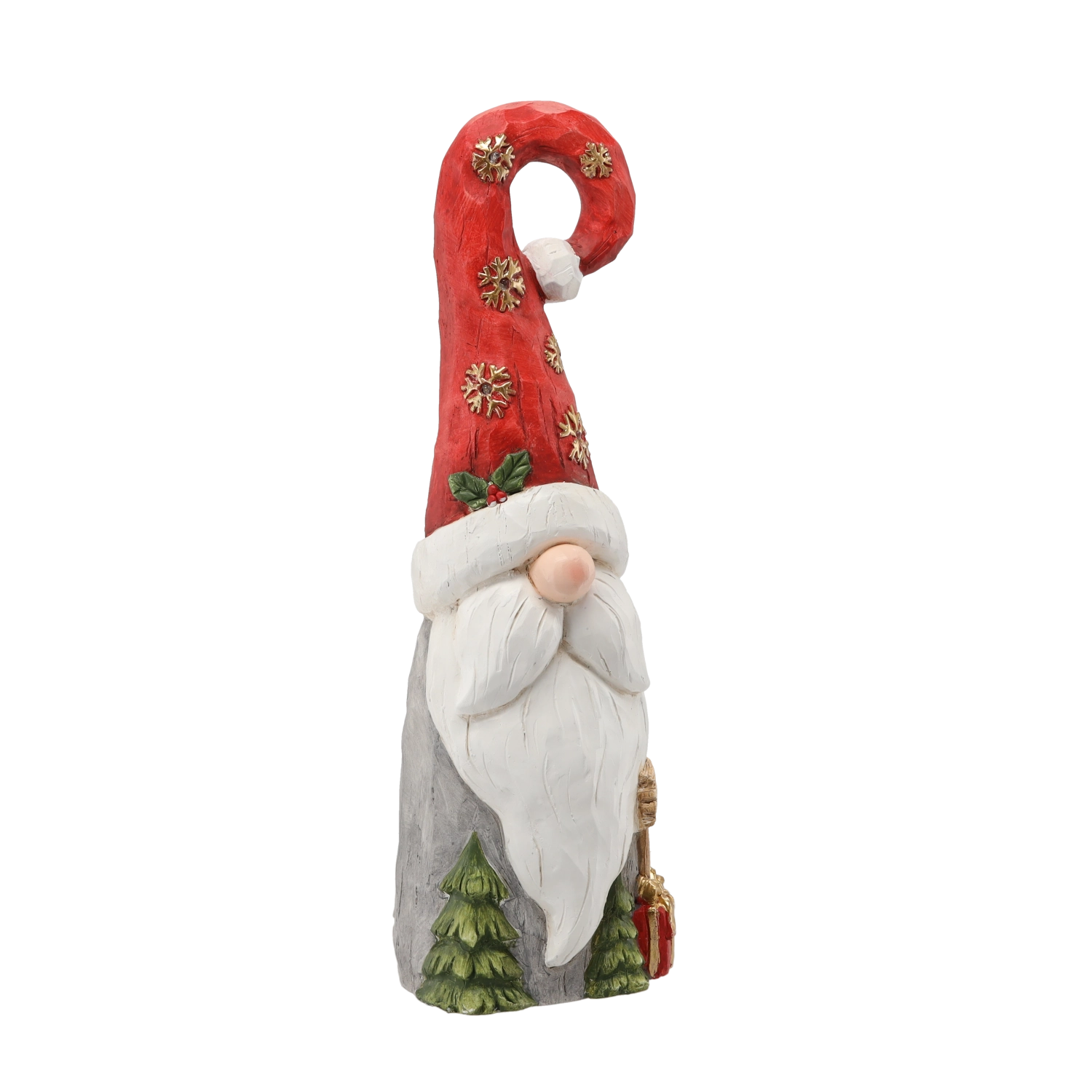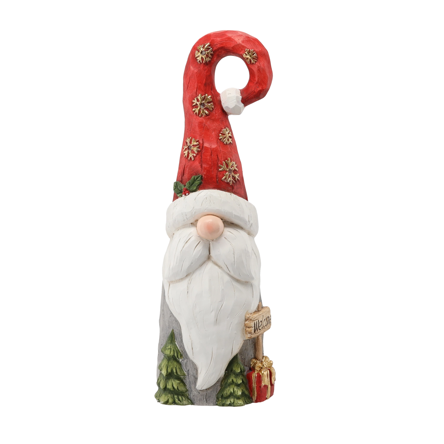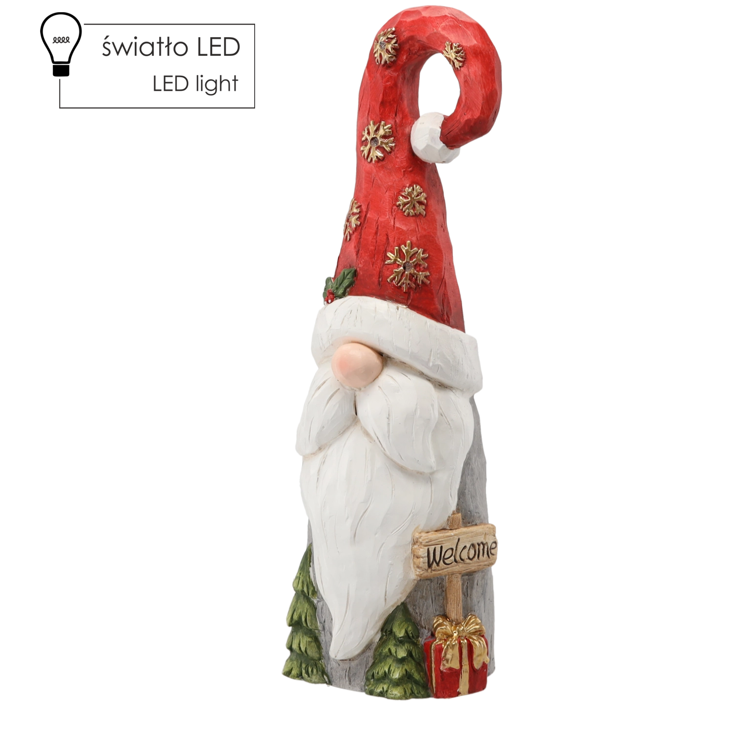Ustvarite doma čarobno praznično vzdušje s to stilsko božično figurico škrata s santovo kapo in vgrajeno LED osvetlitvijo. Zahvaljujoč impresivni višini 66 cm, dovršeni izdelavi in učinkovitim svetlobnim elementom bo izstopajoča dekoracija na komodi, konzoli ali v veži. Trpežen material iz magnezitne zmesi zagotavlja stabilnost in dolgo življenjsko dobo.