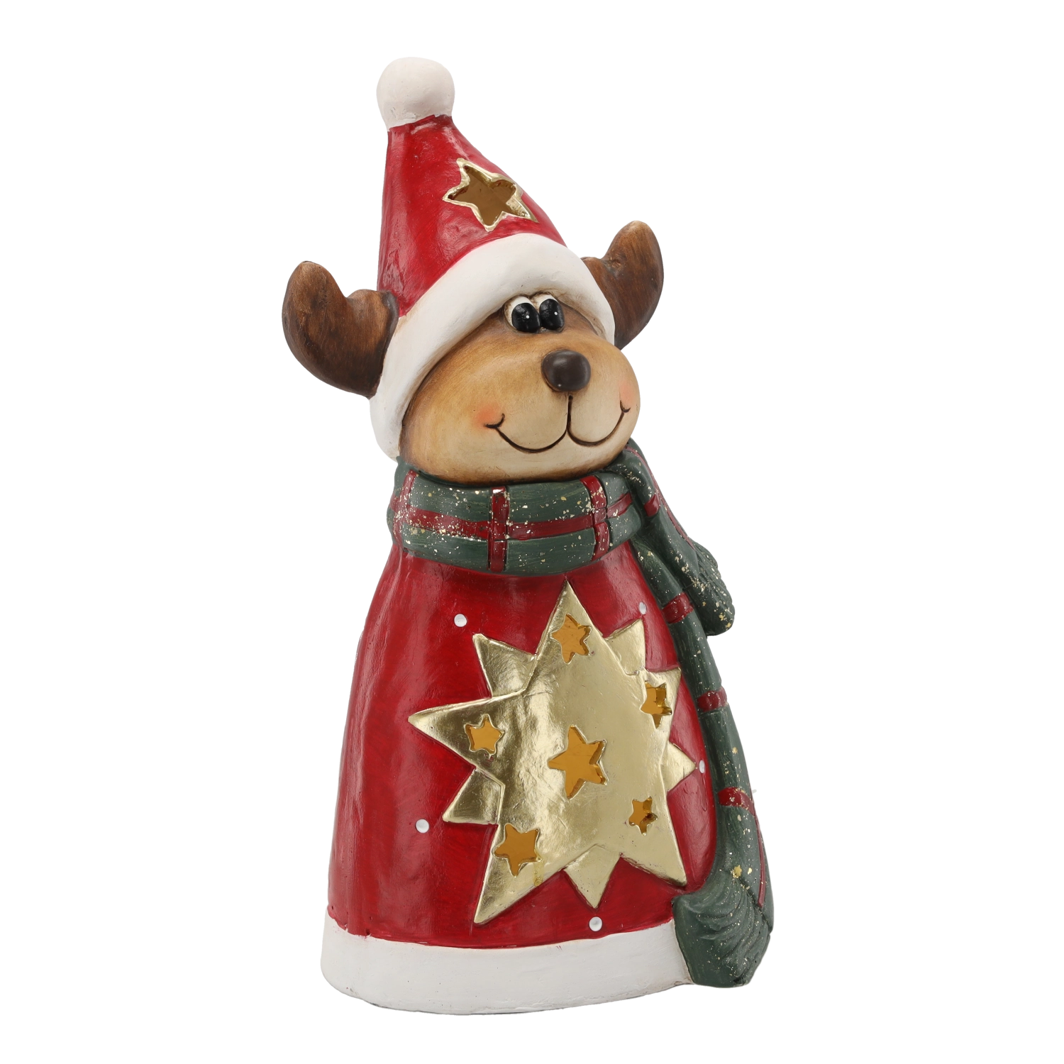 Vnesite v svoj dom praznično vzdušje s to elegantno božično dekoracijo – jelenom z izrezanimi zvezdicami in LED osvetlitvijo. Dekoracija iz kakovostne magnezije deluje razkošno, je trpežna in zahvaljujoč baterijskemu napajanju 3× AAA jo lahko brez kablov preprosto postavite kamor koli. Idealna za komodo, okensko polico ali božično mizo.