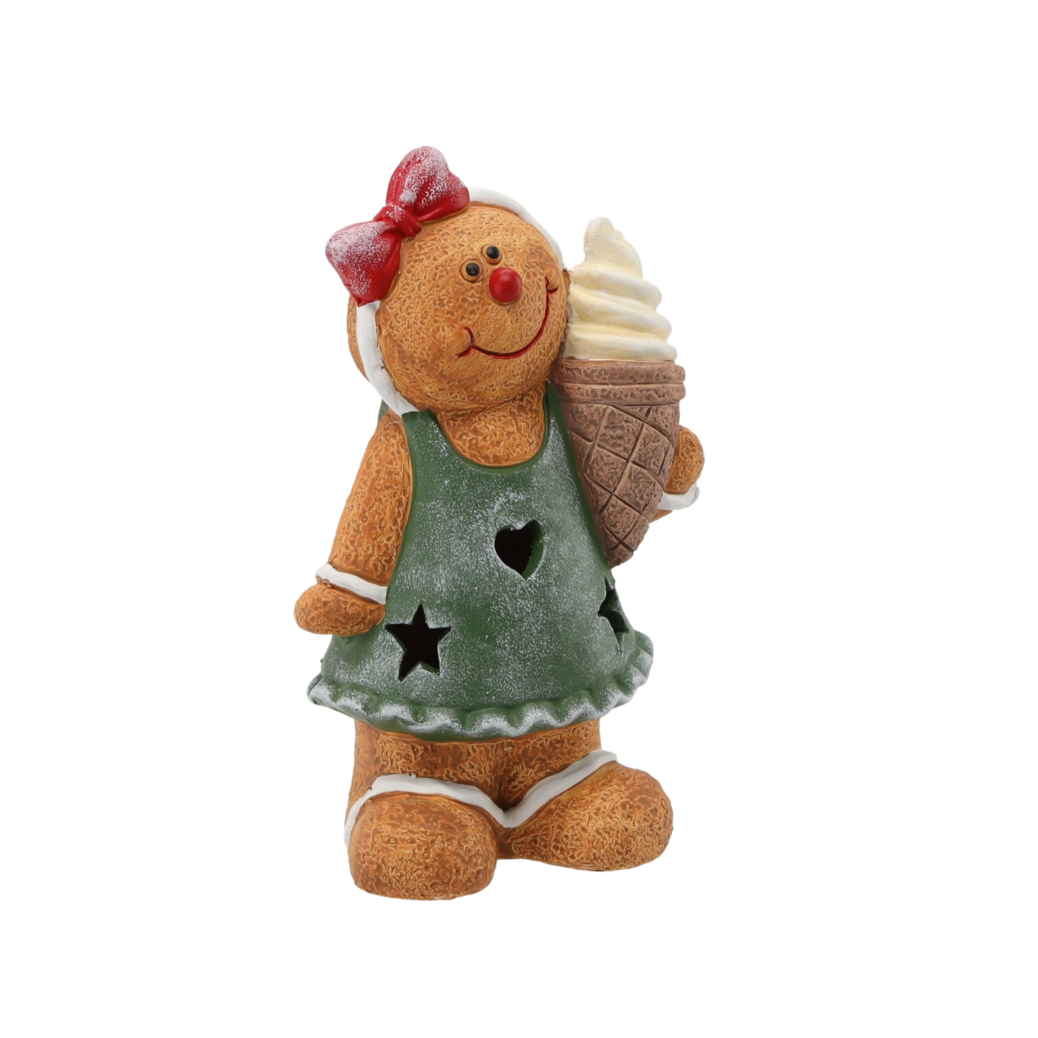 Prisrčna božična figurica medenjaka z integrirano LED osvetlitvijo poživi vsak interier. Zaradi kompaktnih mer se odlično poda na polico, komodo ali praznično mizo. Topla LED svetloba, keramična izdelava in takojšnja pripravljenost za uporabo zahvaljujoč priloženim baterijam ustvarjajo prijetno praznično vzdušje.