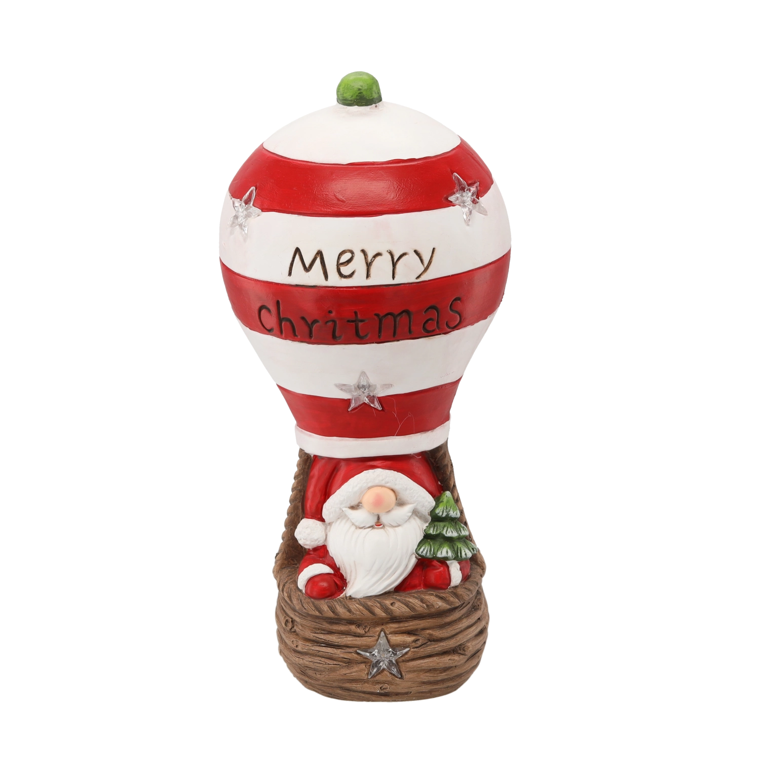 Ta božična figurica prinaša čar praznikov v obliki BOŽIČKA v rdeče‑belo črtastem balonu z napisom “Merry Christmas”. Vgrajena LED lučka daje dekoraciji nežno toplo svetlobo in ustvari prijetno praznično vzdušje v vsakem prostoru.