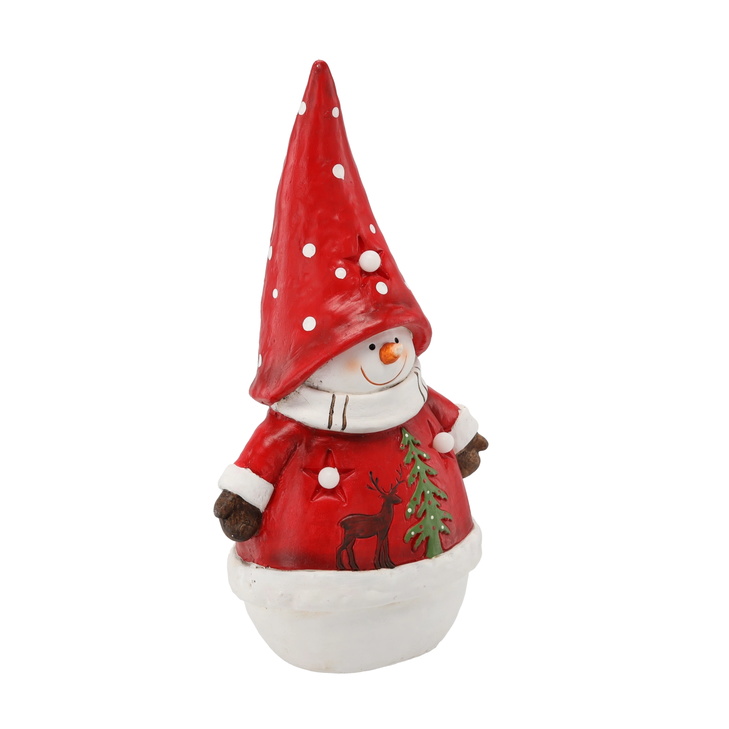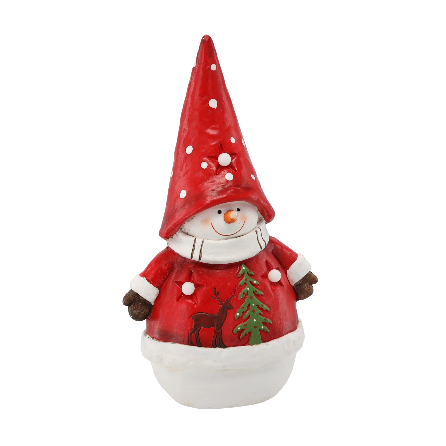 Ta božična figurica snežaka v rdeči kapi in suknjiču z belimi pikami je izrazit element praznične dekoracije. Zahvaljujoč vgrajeni LED osvetlitvi nežno zasije in ustvari prijetno, zimsko obarvano vzdušje v vsakem prostoru. Kakovosten material iz magnezijeve keramike zagotavlja stabilnost in dolgo življenjsko dobo.