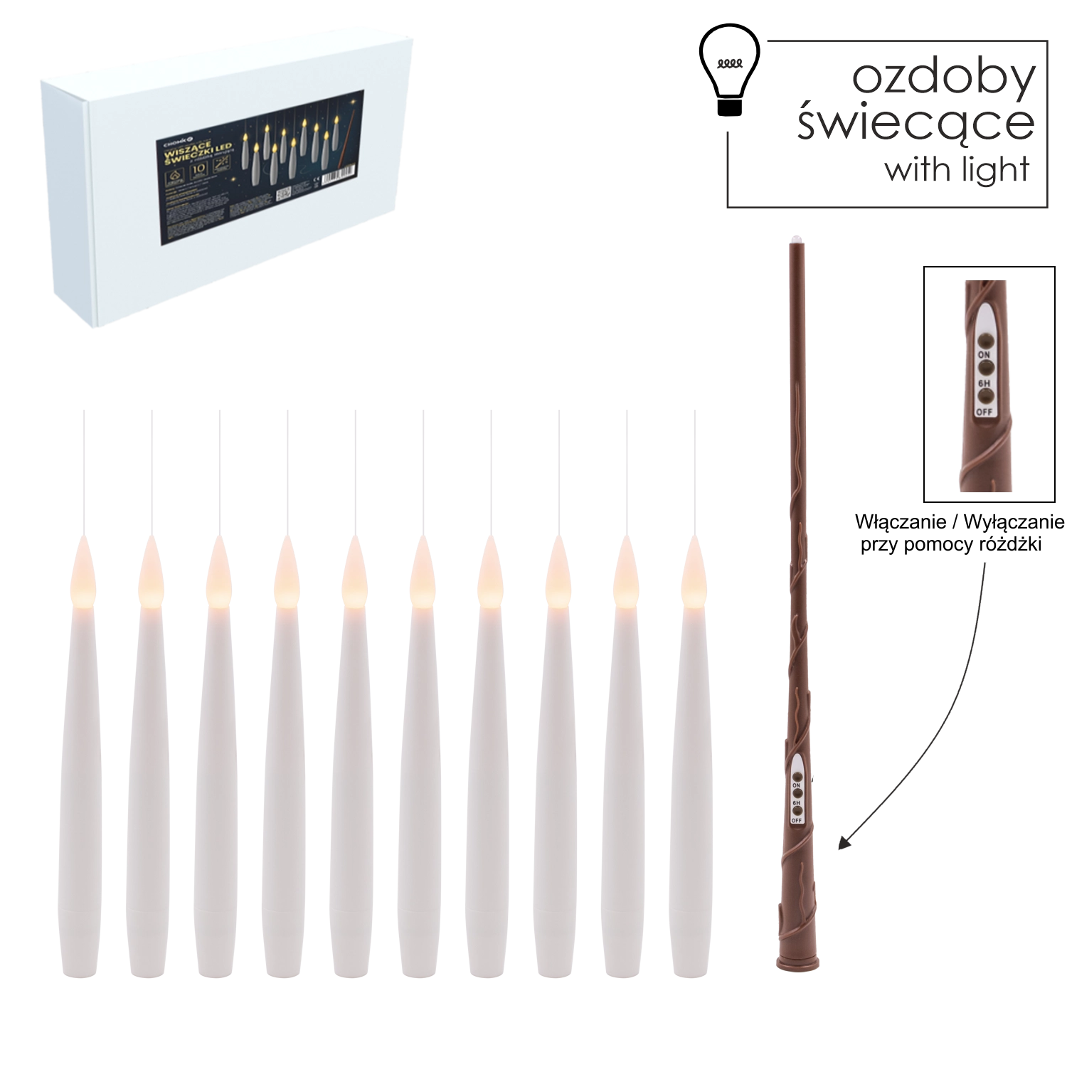 Vsak prostor spremenite v magični kotiček z visečimi LED svečami, ki oddajajo toplo, prijetno svetlobo in izgledajo kot prave. Daljinec v obliki čarobne palice omogoča udoben vklop, izklop ter nastavitev časovnika z enim gibom – brez nereda in tveganja odprtega ognja.