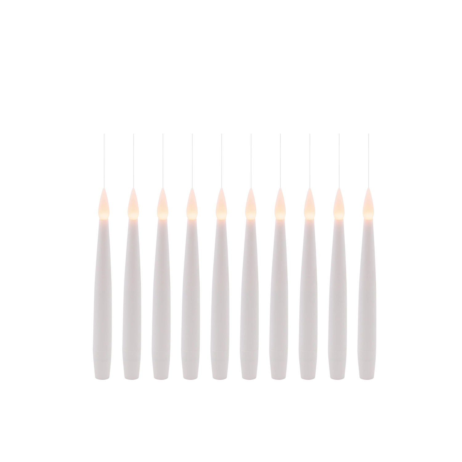 Ustvarite doma pravljično vzdušje s kompletom 10 visečih LED sveč z realističnim plamenčkom in upravljanjem s čarobno palico. Brez kablov, varna in osupljiva dekorativna svetloba s funkcijo ON/OFF, časovnikom in učinkom utripanja – idealno za božič, otroško sobo in izvirna darila.