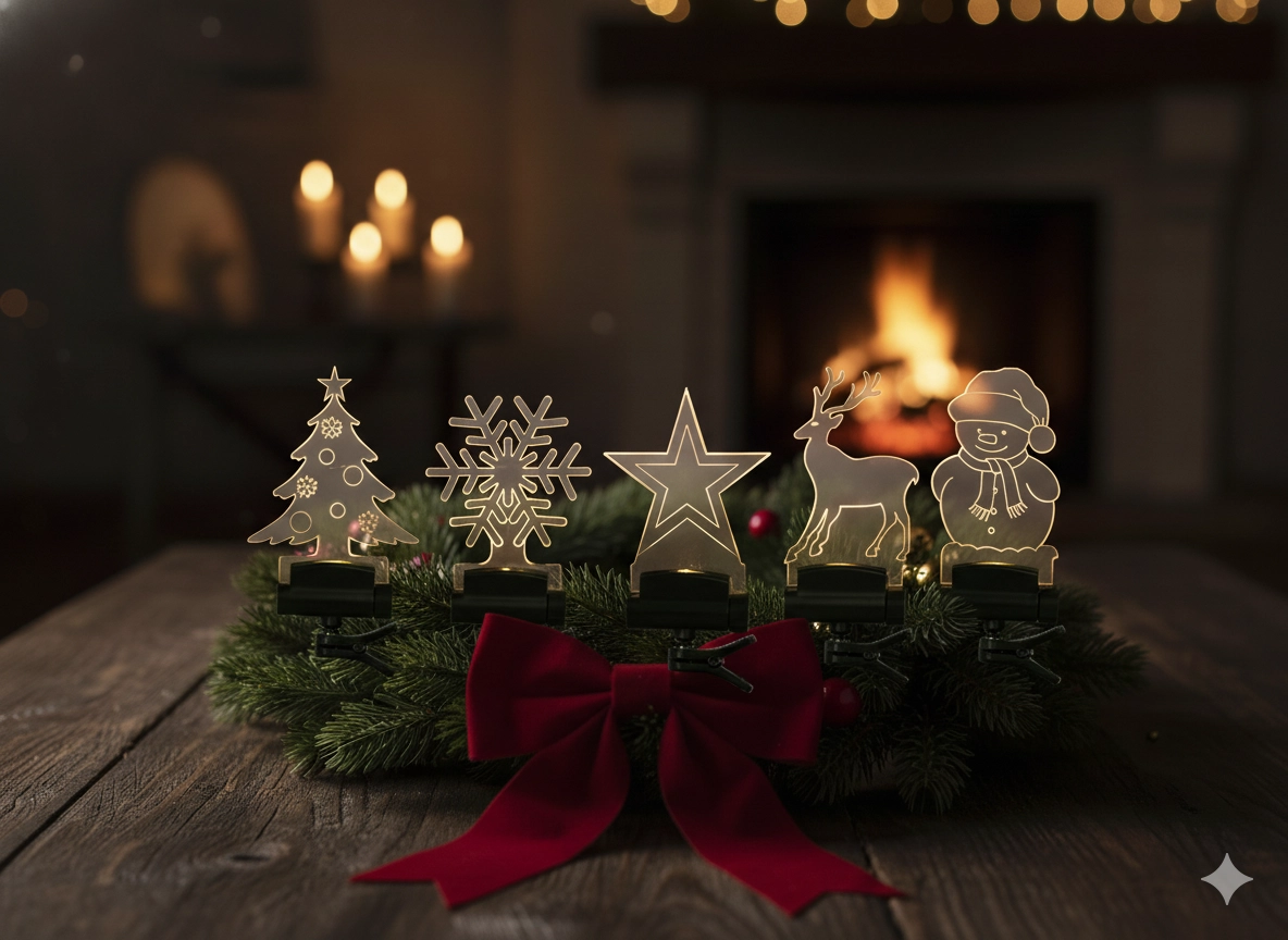 Stilski set LED dekoracij bo vsak kotiček spremenil v prijeten praznični prostor. Prosojni akrilni motivi zasijejo z toplo belo svetlobo in ustvarijo nežen, eleganten učinek brez kablov in vrtanja. Zahvaljujoč univerzalnim pritrdilom jih preprosto namestite tja, kjer najbolj izstopajo.