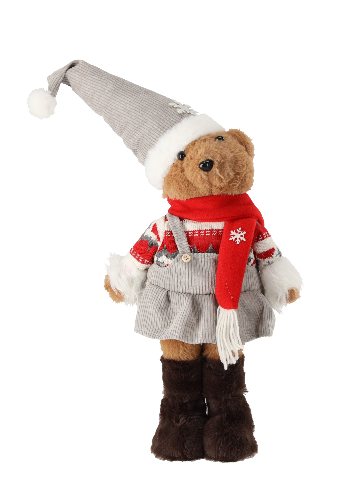 Prisrčen božični medvedek višine 50 cm vnese v dom toplo in prijetno vzdušje. Na voljo v dveh različicah – deček ali deklica – je idealen kot stilna božična dekoracija na komodi, mizi ali pod jelko. Zahvaljujoč mehkim, prijetnim materialom in skrbno izdelanim zimskim opravlom bo postal priljubljen okras in prisrčno darilo.