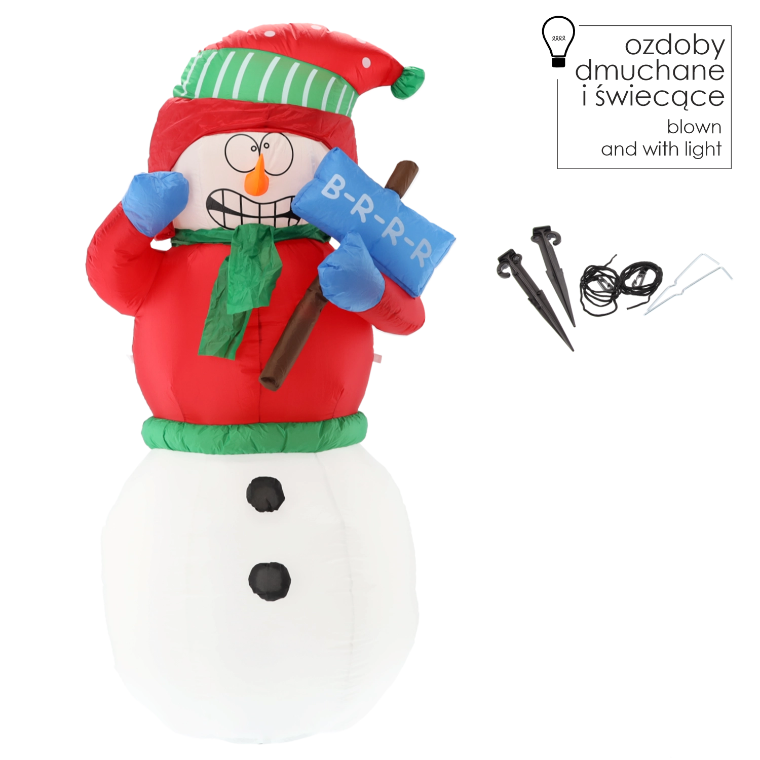 Namestitev je hitra in brezskrbna – samo priključite v vtičnico in vgrajen ventilator poskrbi za samodejno napihovanje. Praktični klini in pritrdilne vrvice (sidranje) omogočajo varno pritrditev dekoracije proti vetru. Idealno za vrt, teraso, predvrt, poslovni vhod ali izložbo.