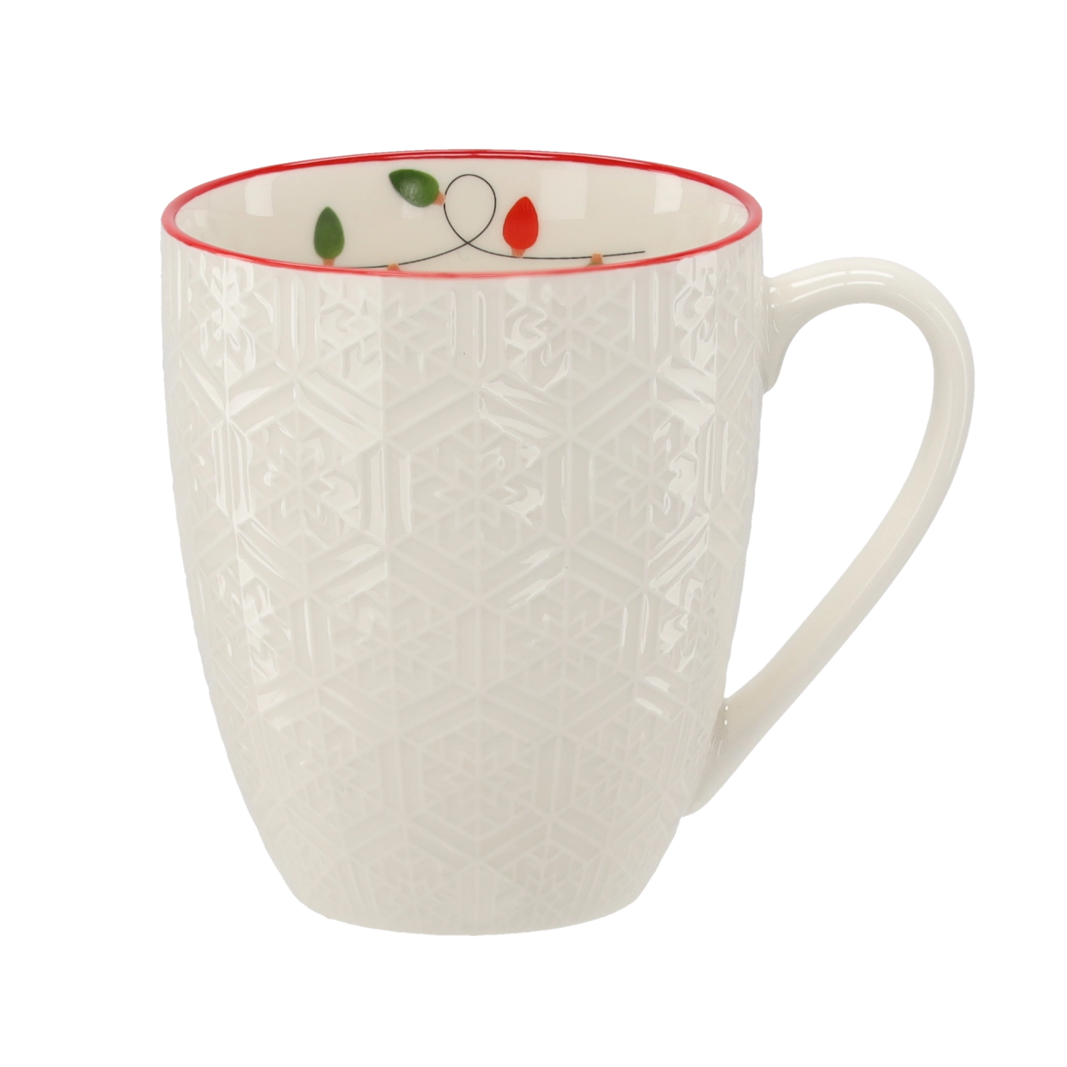 Nežen geometrijski relief v kombinaciji z rdečim robom daje vrčku izjemen videz, ki poudari božično vzdušje pri vsakem pogrinjku.