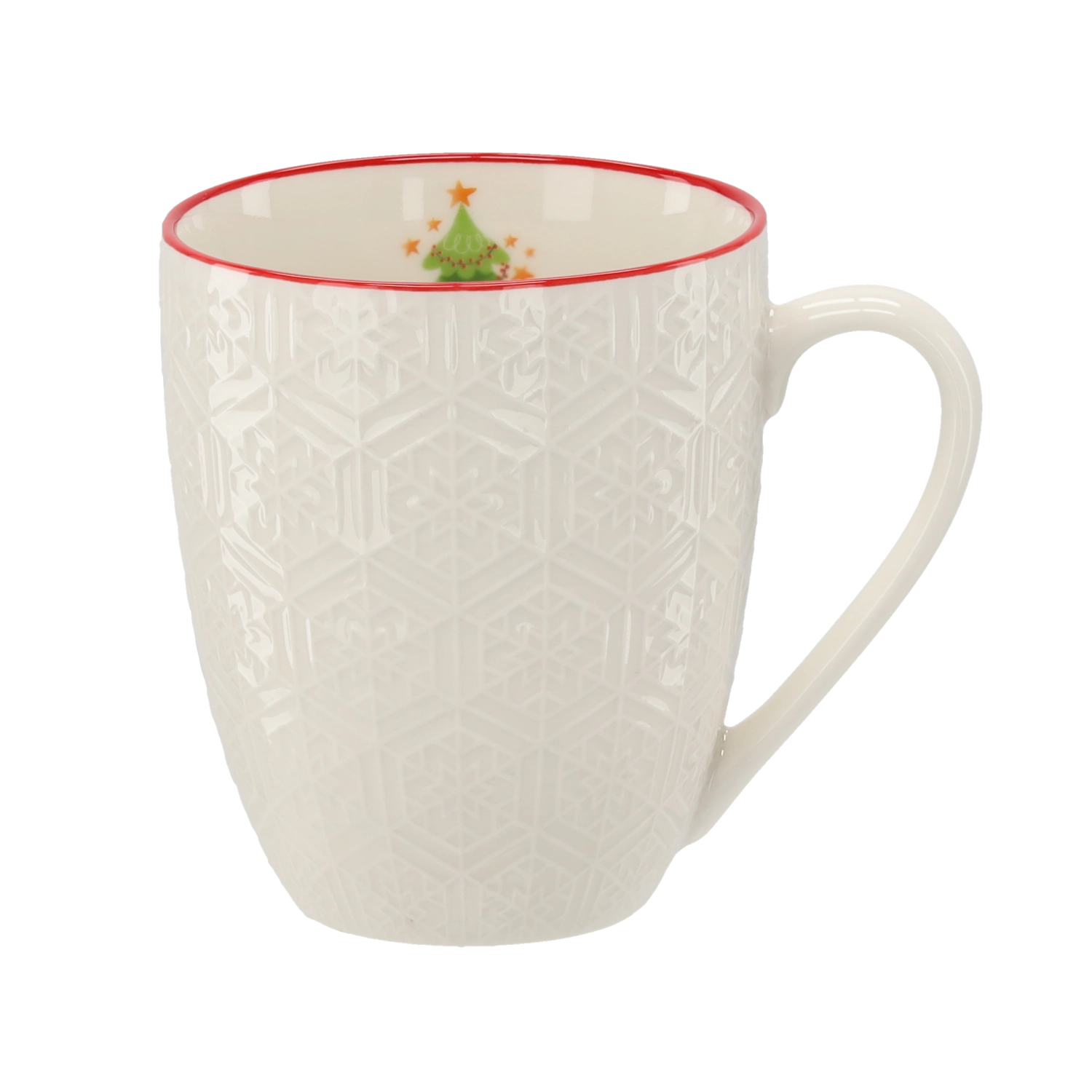 Uživajte v zimskem udobju s tem elegantnim porcelanastim vrčkom s prostornino 400 ml, ki ga krasijo nežen relief, praznični motivi in rdeč rob. Idealno za vroč čaj, kavo ali kakav, odlično dopolni božično vzdušje in postane stilski dodatek kuhinji.