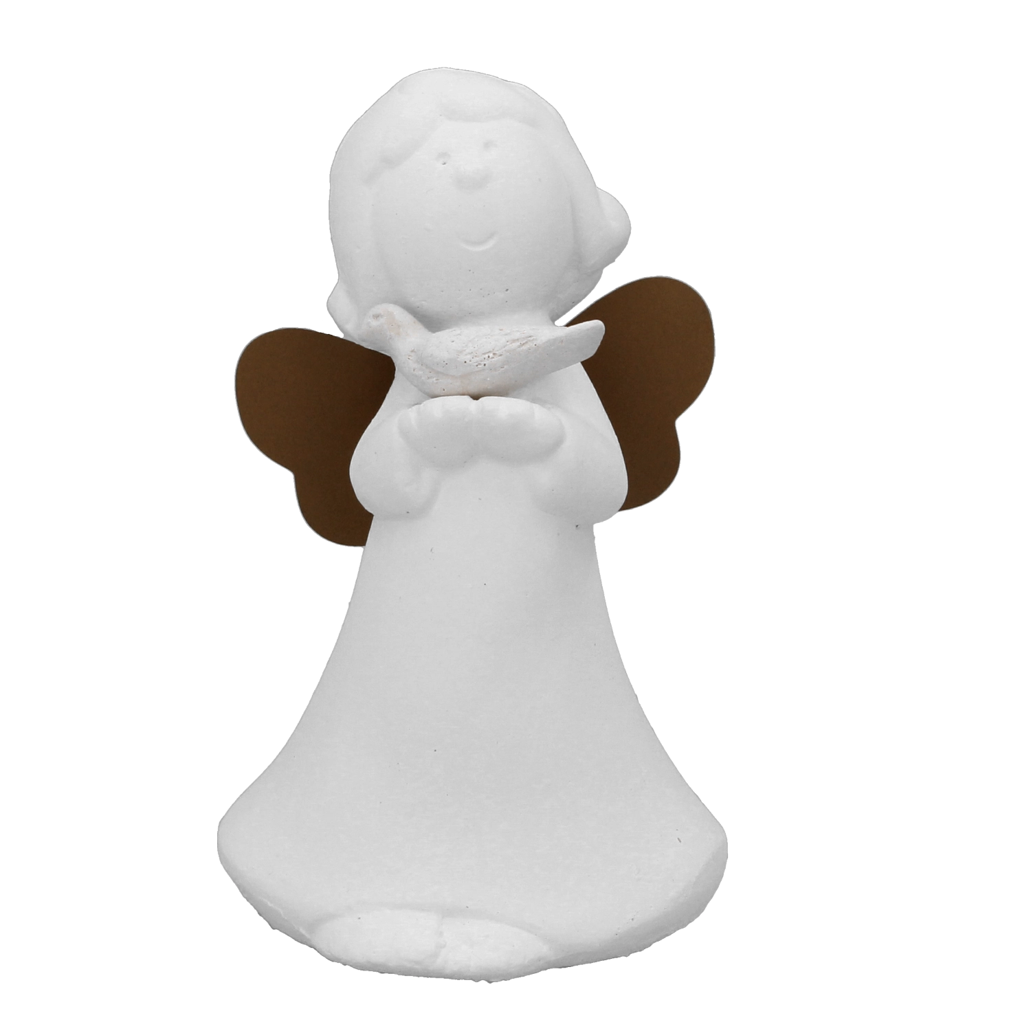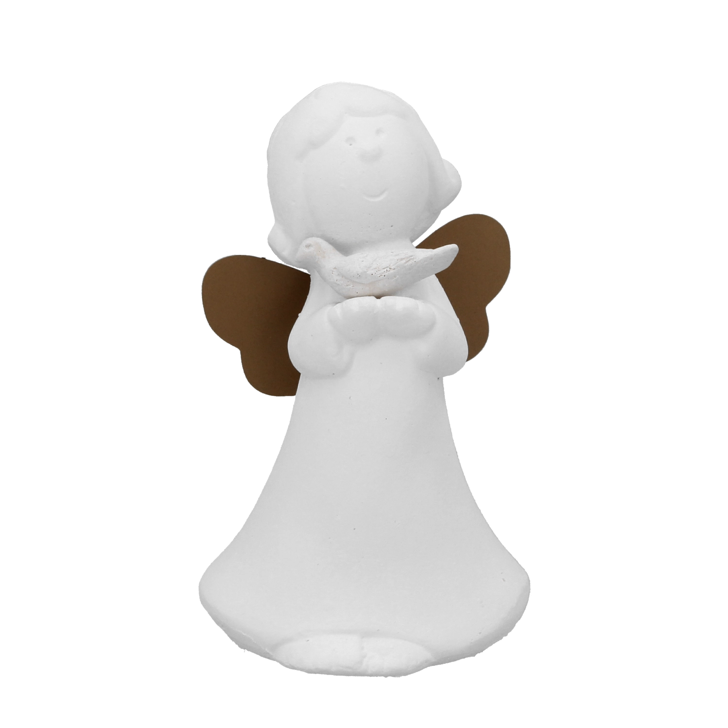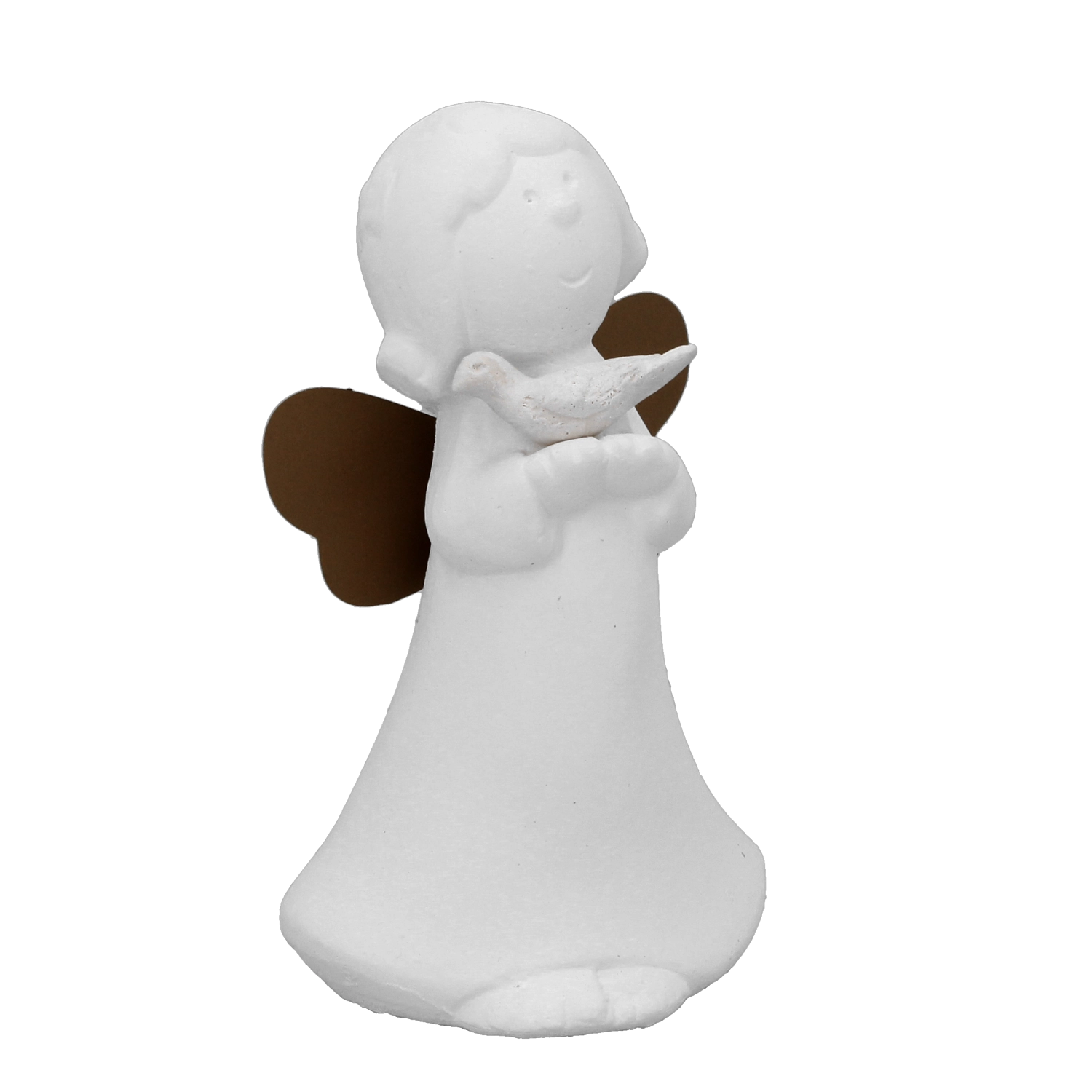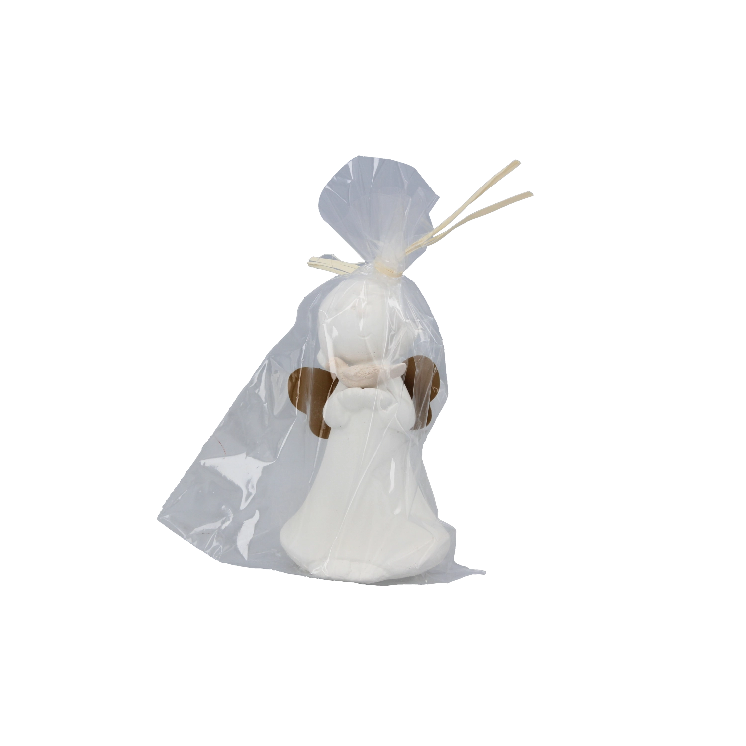 Angelček je izdelan iz kakovostne keramike z ozirom na detajle, da izstopa kot elegantna dekoracija in izvirno drobno darilo. Odlično se poda v času božiča, ob krstu ali poroki, pa tudi skozi vse leto kot nežen poudarek, ki polepša vaš dom.