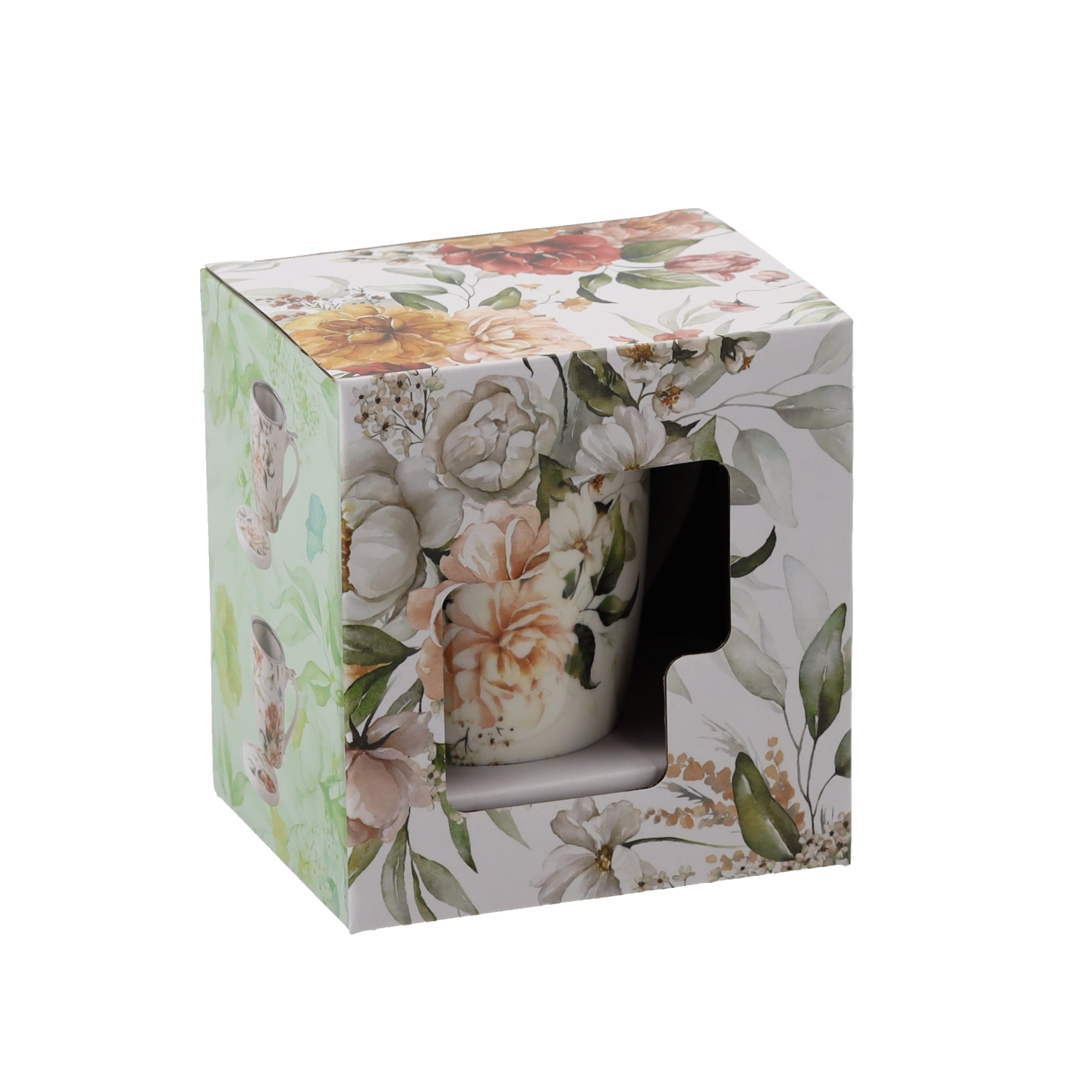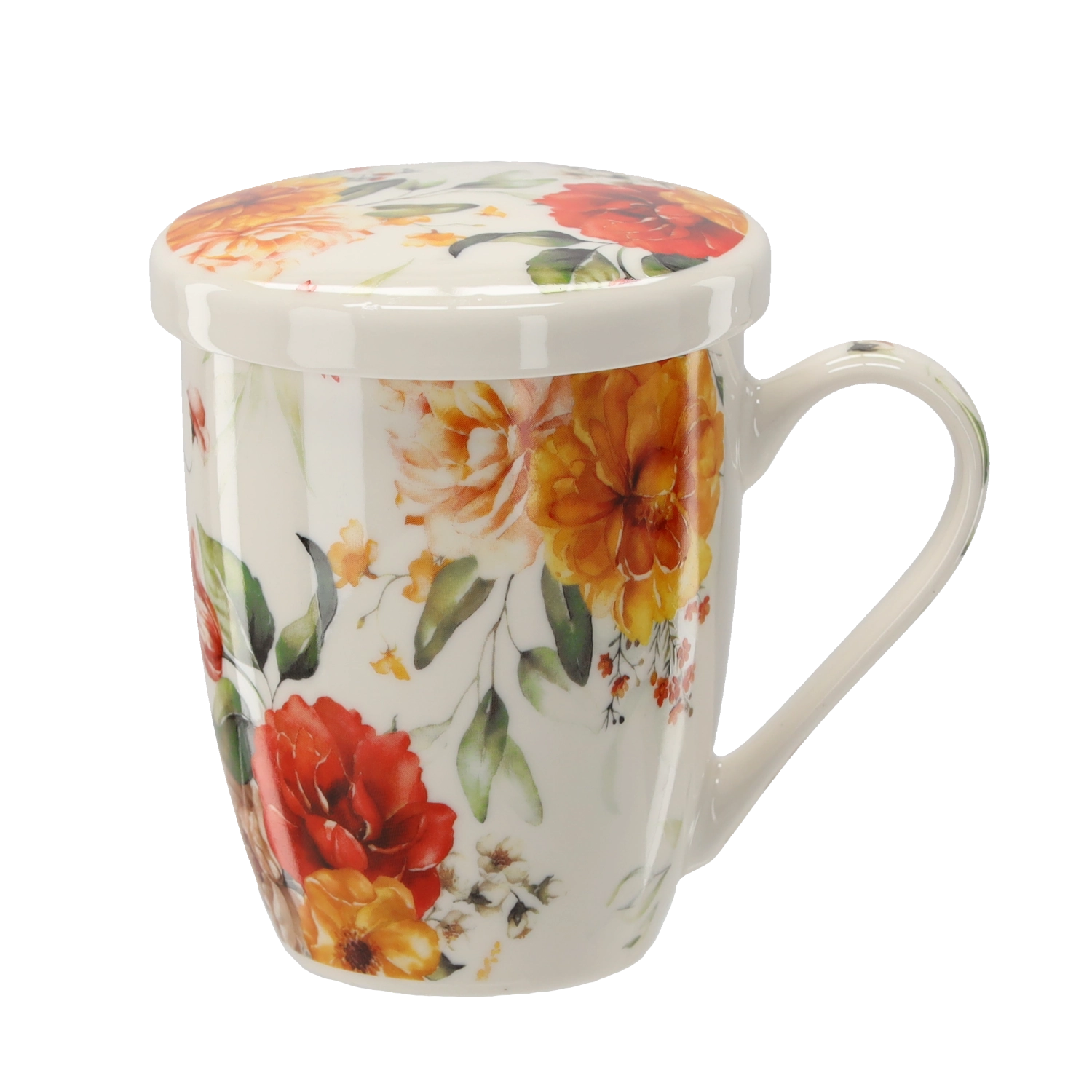 Kakovosten porcelan z elegantnim cvetličnim vzorcem se odlično poda v vsako kuhinjo ali pisarno. Ergonomsko oblikovan ročaj zagotavlja udoben in varen oprijem. Vzdrževanje je preprosto – skodelico in pokrov lahko perete v pomivalnem stroju ter segrevate v mikrovalovni pečici (vedno brez kovinskega cedila).