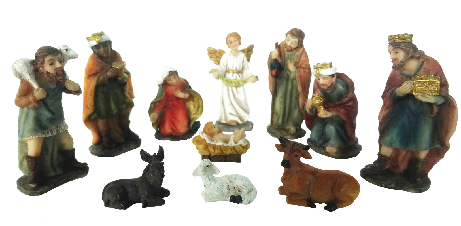 Ta popoln set vključuje vse ključne like za klasičen prikaz jaslic: Jožef, Marija, Jezušček v jaslih, angel, pastir, Trije kralji in živali (osel, ovca, vol). Vsaka figurica je izdelana iz kakovostnega poliurezina, ki je čvrst, barvno obstojen in odporen na poškodbe.