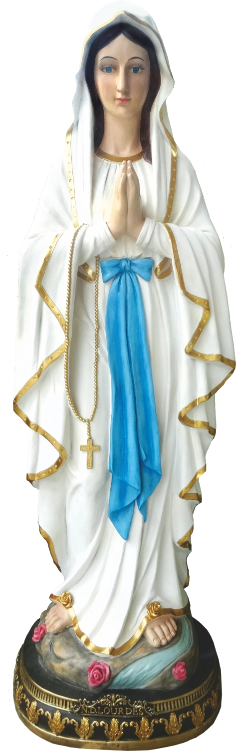 Ta imponanten kip Lurške Matere Božje v prostor prinaša mir in duhovno vzdušje. Zahvaljujoč skrbnemu ročnemu poslikavanju izstopajo nežne poteze obraza, gube oblačil, zlate podrobnosti in rožni venec. Steklene oči dodajo figuri globino in živost.