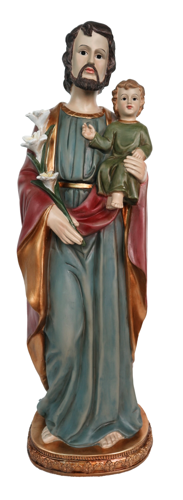 Eleganten kip svetega Jožefa z Jezusom v višini 61 cm je brezčasen sakralni okras za notranje in zunanje prostore. Odlikujejo ga ročno poslikani detajli, odpornost na vremenske vplive ter stabilno podnožje. Idealno za domači molitveni kotiček, vrt, kapelico in cerkev.