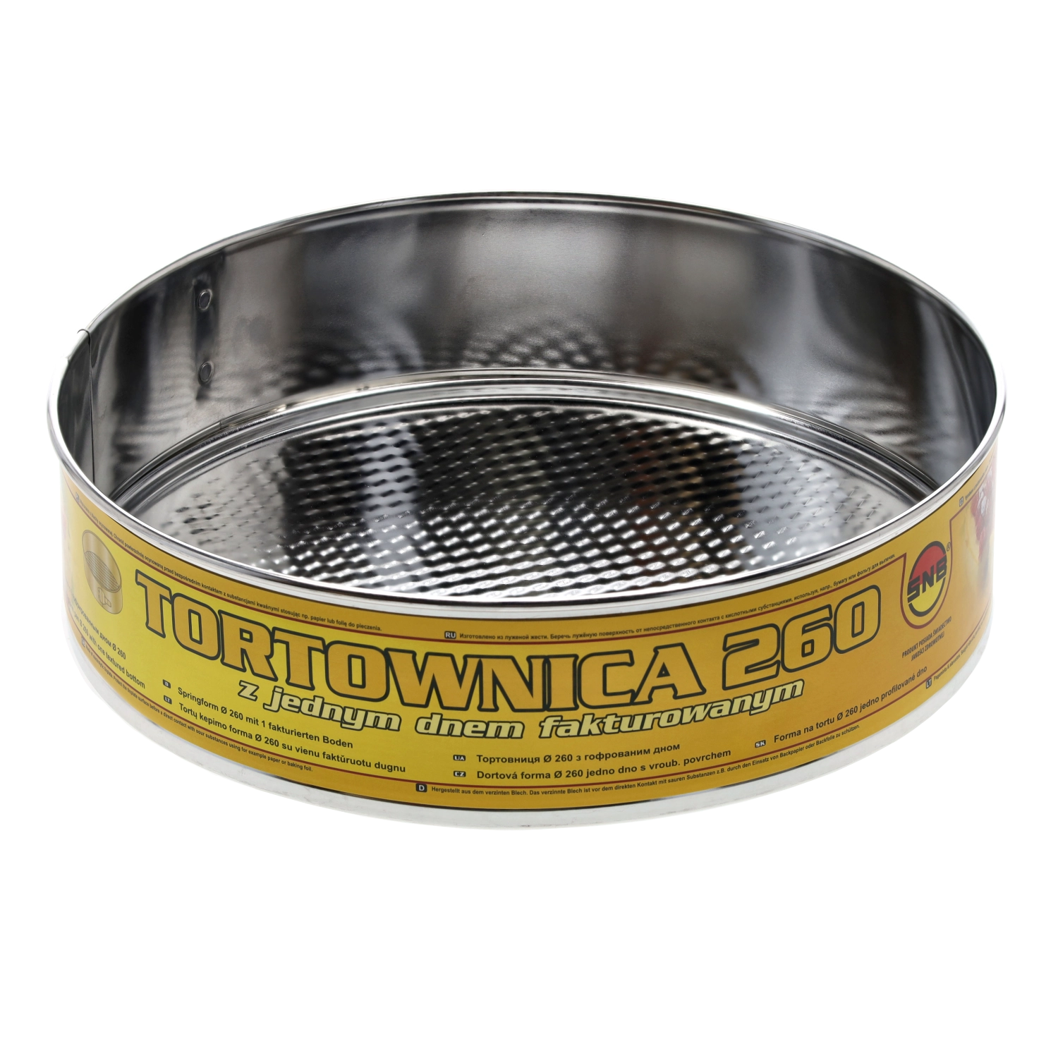 Praktičen pekač za torte s premerom 26 cm iz odpornega pocinkanega jekla za preprosto pripravo tort in pit. Zahvaljujoč odstranljivemu dnu z reliefno površino se sladice zlahka odstranijo in imajo popolnoma gladek videz. Udobna sponka omogoča hitro odpiranje pekača in postrežbo neposredno na dnu. Za zaščito površine pred kislimi sestavinami priporočamo uporabo pekačnega papirja.