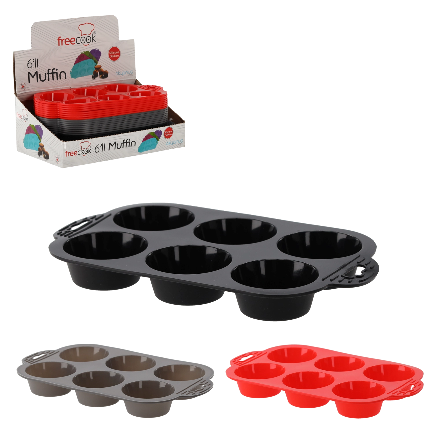 - Silikonski pekač za mafine s 6 vdolbinami in stranskimi ročaji