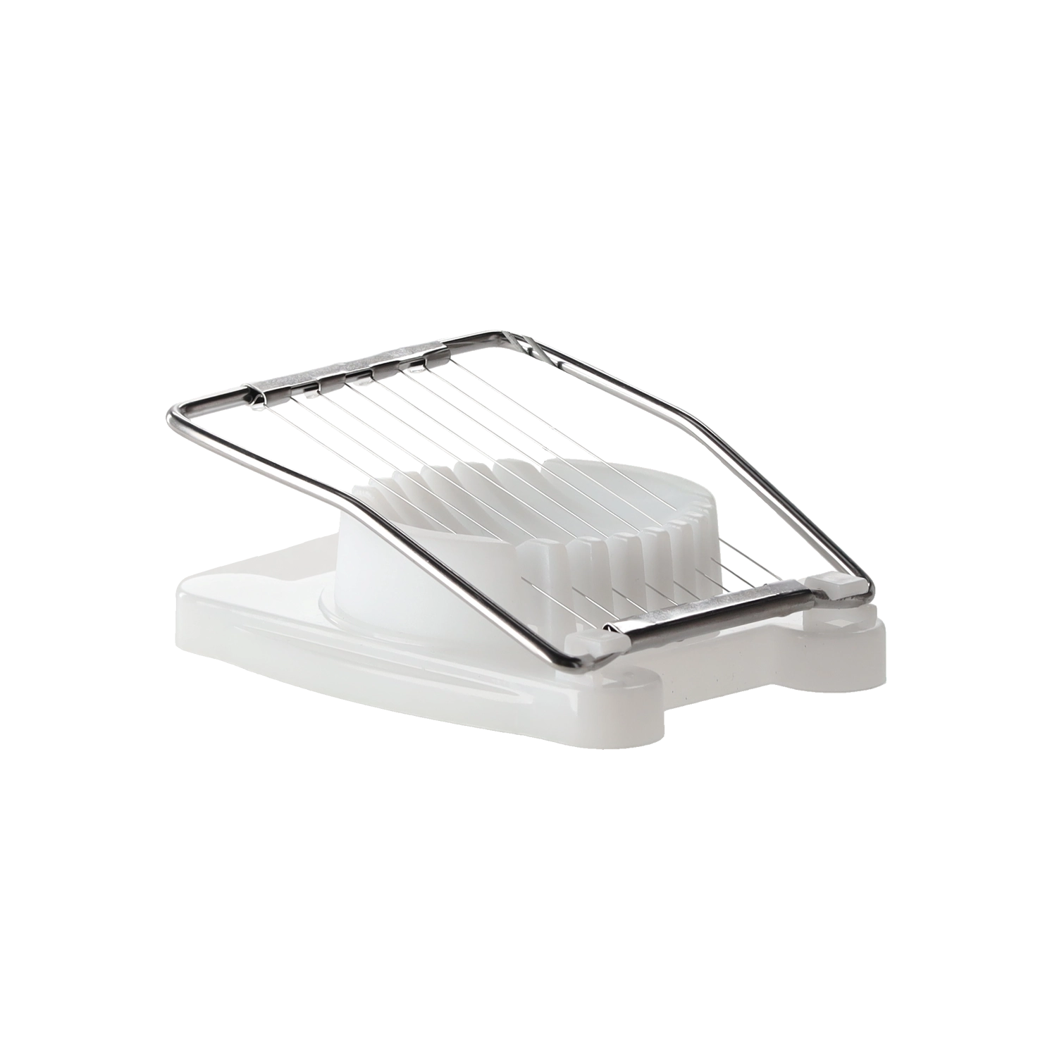 Praktičen rezalnik za jajca za hitro in enakomerno rezanje na rezine. Zahvaljujoč ostrim strunam iz nerjavnega jekla ustvari estetsko enake rezine, idealne za solate, sendviče ali za dekoracijo jedi. Enostaven za uporabo, prihrani čas in ponuja vzdržljivo konstrukcijo iz kakovostne plastike in nerjavnega jekla.