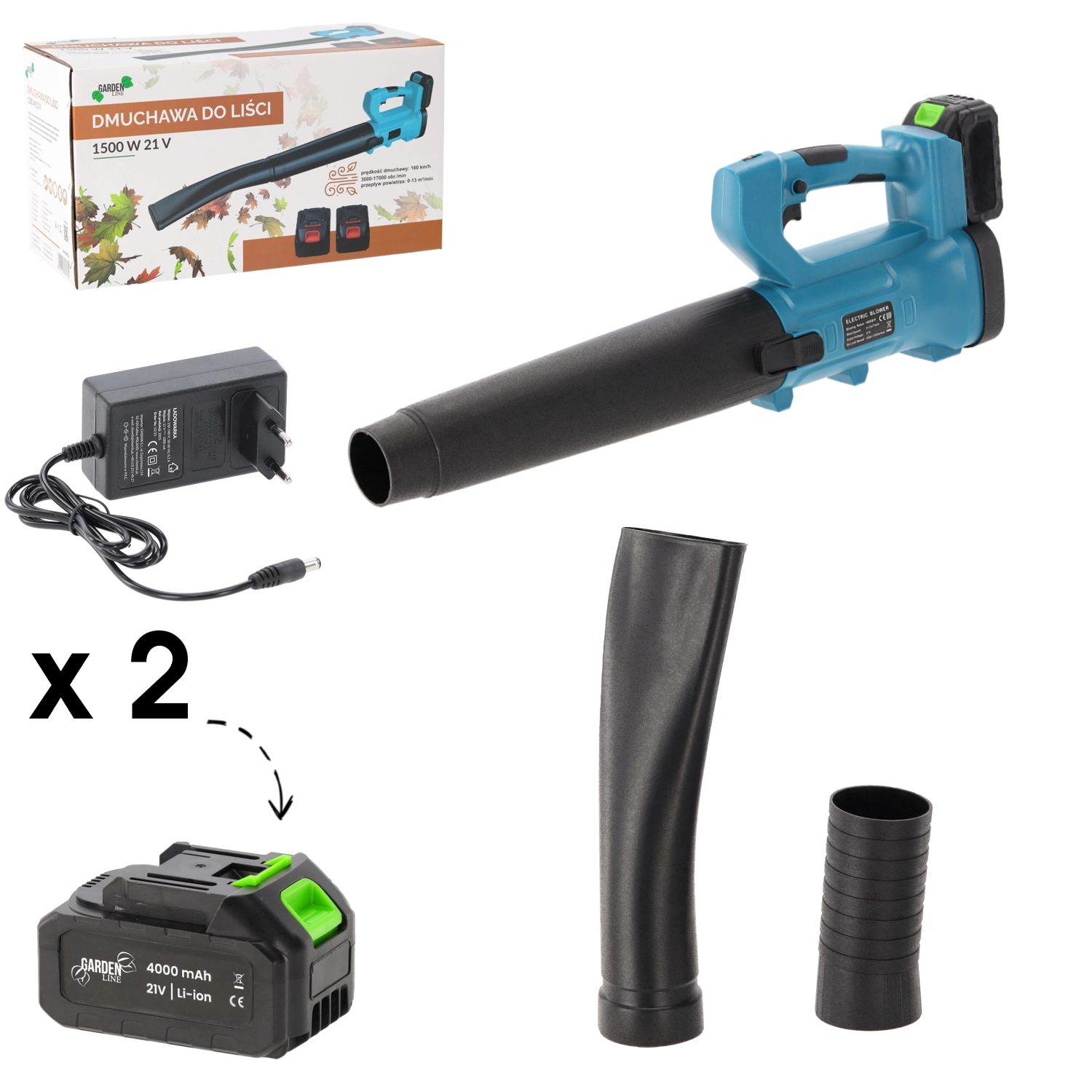 Akumulatorski vrtni pihalnik 21 V z 2× 4Ah baterijama in polnilnikom