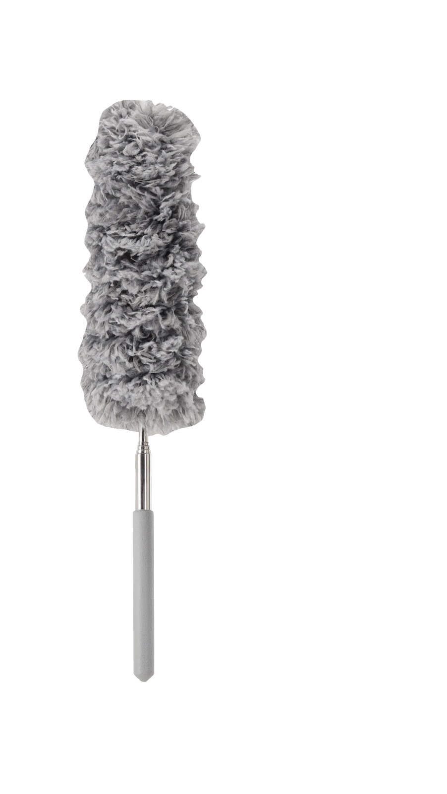 To teleskopsko mikrovlakneno perje je idealen pomočnik za vsakodnevno čiščenje doma. Zahvaljujoč nastavljivemu kovinskemu nastavku z razponom 38–85 cm zlahka dosežete omare, žaluzije, svetila in med radiatorje. Nežna in gosta vlakna privlačijo ter vežejo prah, dlake in cvetni prah brez dvigovanja v zrak.