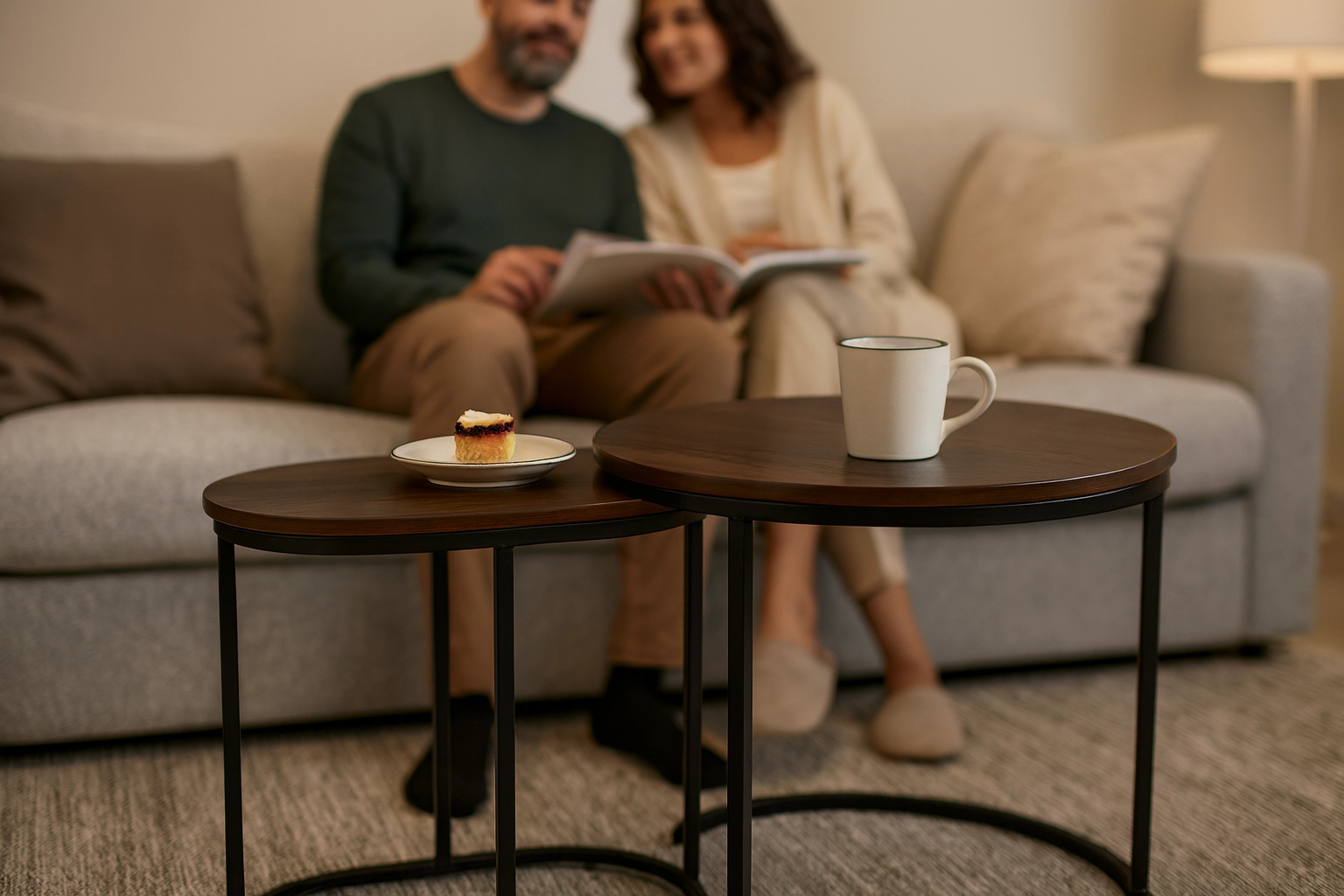 Ta univerzalni komplet miz je odlična izbira za moderen dnevni prostor, prijeten bralni kotiček in manjše interierje. Kombinacija lesnega dekorja in črne kovinske konstrukcije poudari brezčasen videz ter se zlahka ujema z industrijskim, skandinavskim in klasičnim slogom.