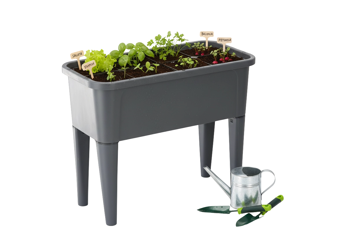 Ergonomska višina 83 cm razbremeni hrbet in olajša zalivanje, presajanje ter nego rastlin brez potrebe po sklanjanju.