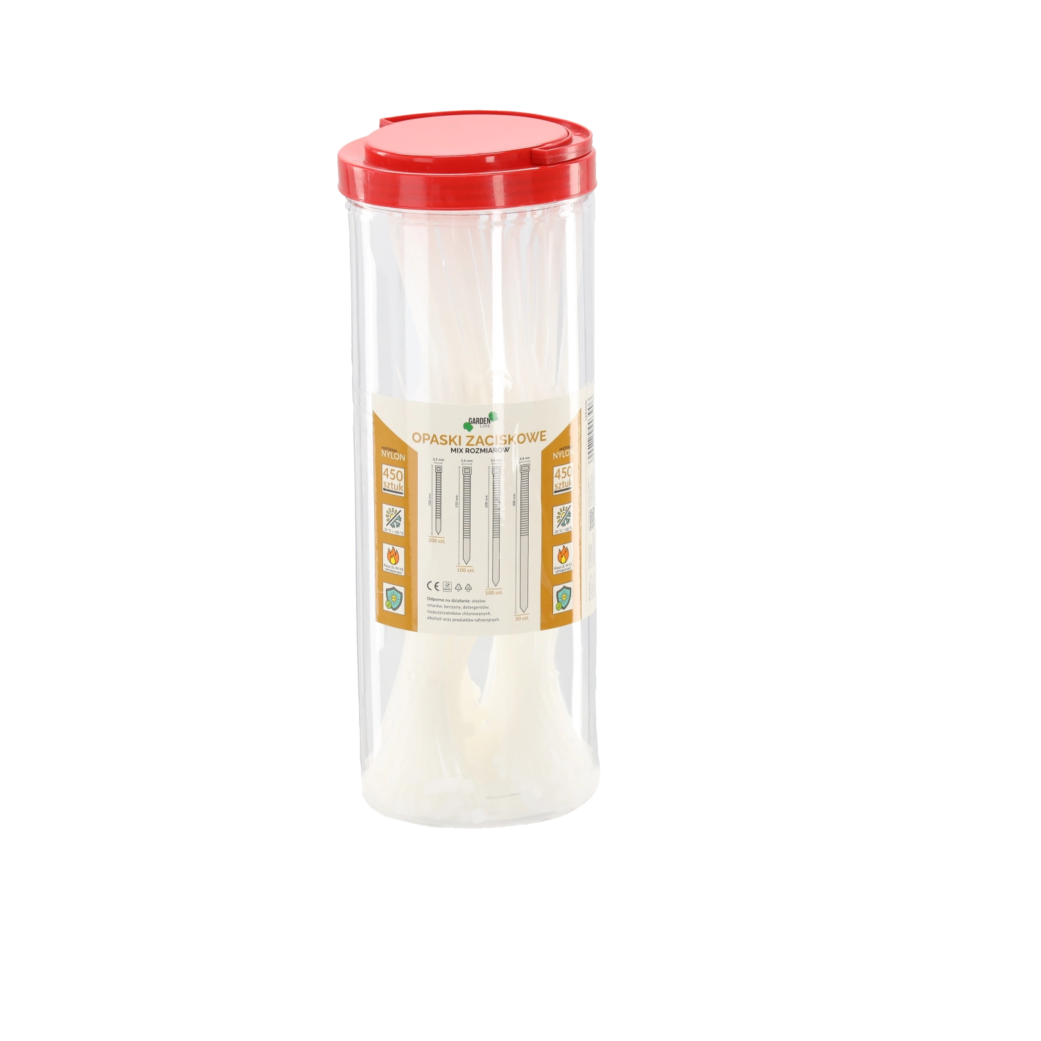 Set najlonskih vezic v tubi, 450 kosov – mešanica velikosti, UV odporne