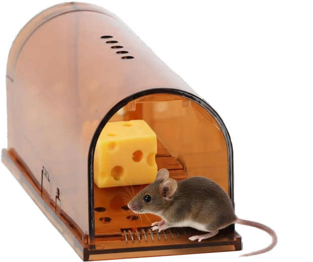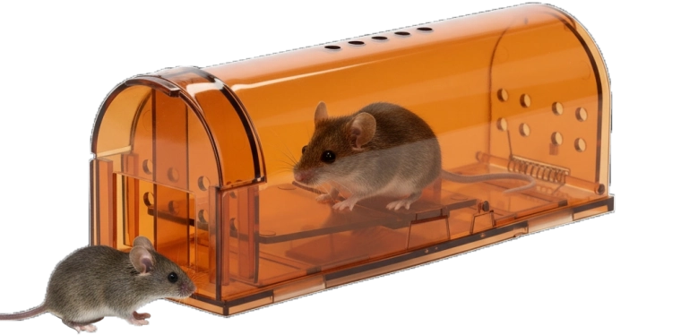 Občutljiv sprožilni mehanizem po vstopu glodavca hitro zapre vratca in zanesljivo prepreči pobeg – humano in učinkovito rešitev brez strupov.