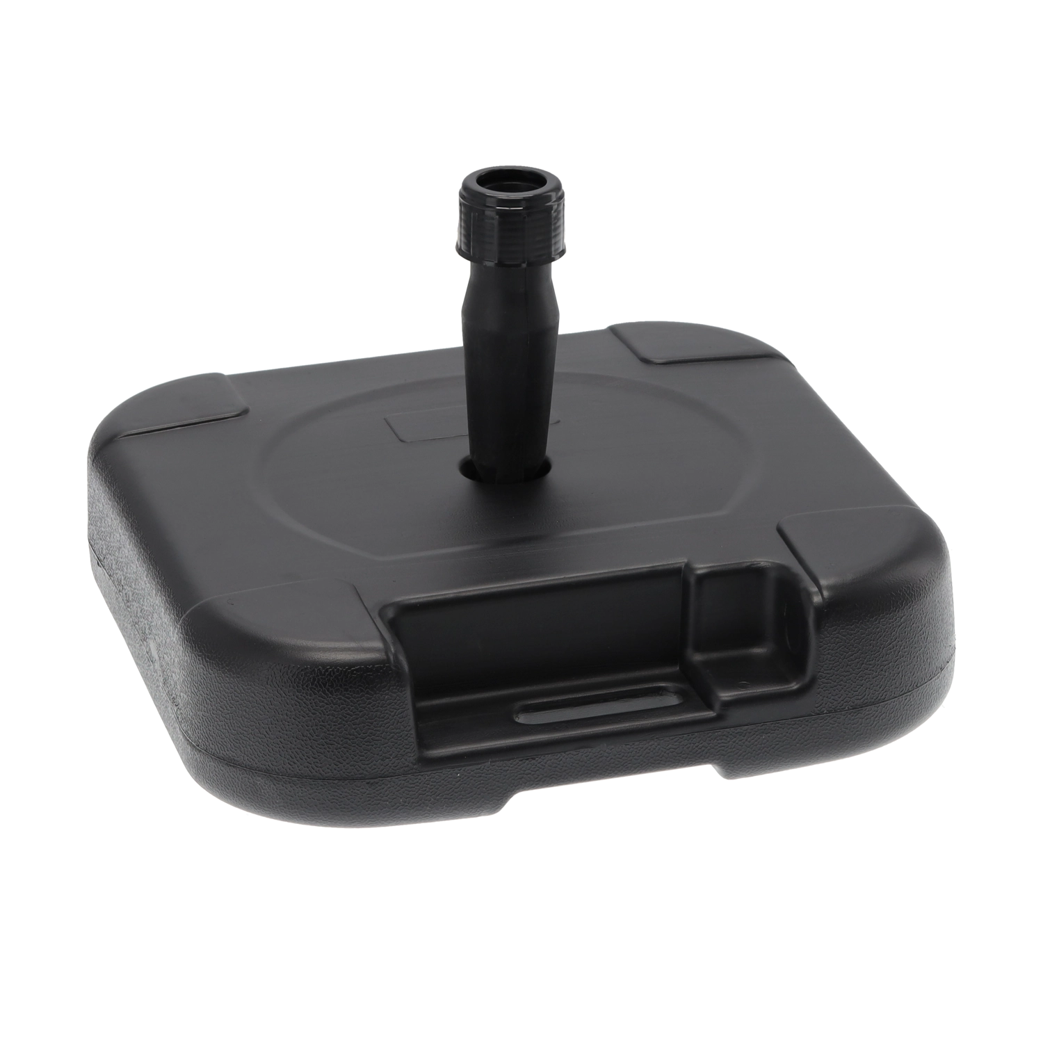 Praktičen in eleganten podstavek za vrtno senčilo z možnostjo polnjenja z vodo zagotavlja stabilnost in varno pritrditev tudi ob blagom vetru. Zaradi nizke teže pred polnjenjem se zlahka prenaša, po napolnitvi pa nudi dovolj veliko obtežitev za udobno uporabo na terasi, balkonu in na vrtu. Elegantna črna izvedba se poda tako k modernim kot klasičnim zunanjim prostorom.