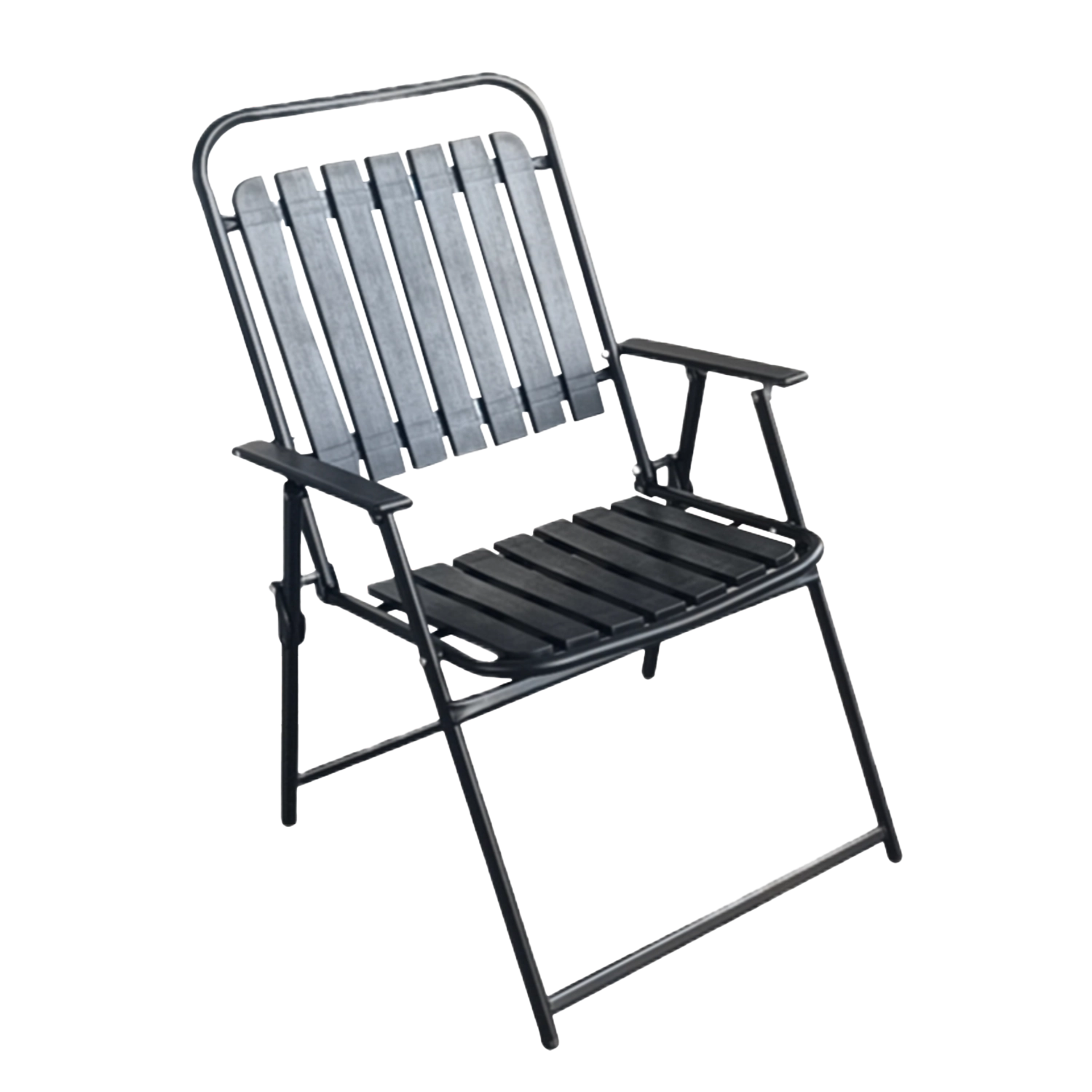 Eleganten in praktičen zložljiv vrtni stol v univerzalni črni barvi prinaša udobno sedenje, enostavno shranjevanje in vzdržljivo kovinsko konstrukcijo. Zahvaljujoč naslonu s letvastim dizajnom in naslonoma za roke je idealen za teraso, balkon in vrt – vedno pripravljen na sprostitev.