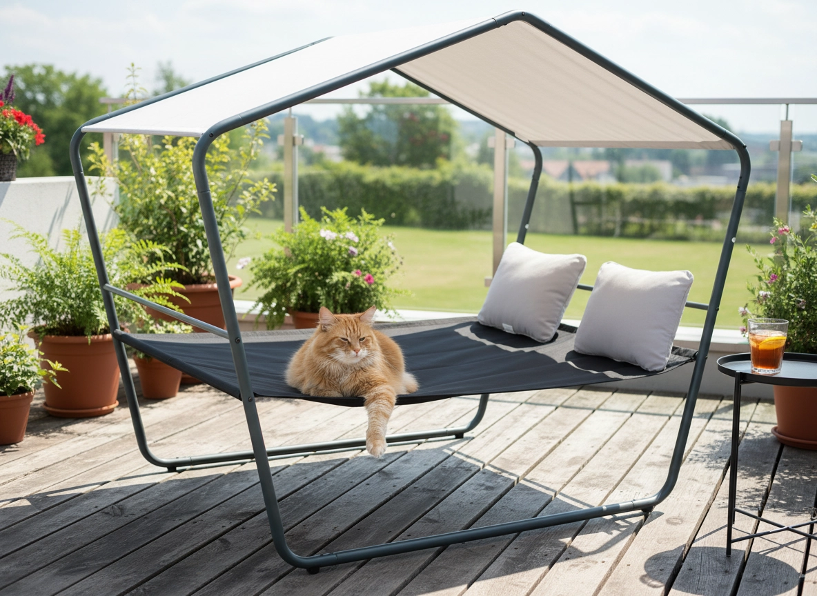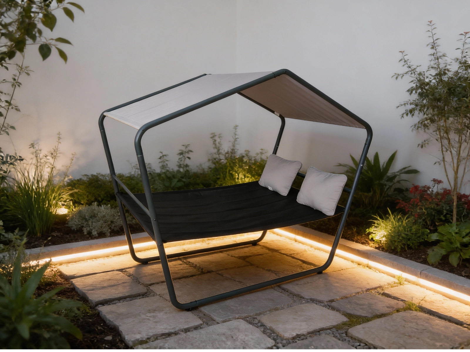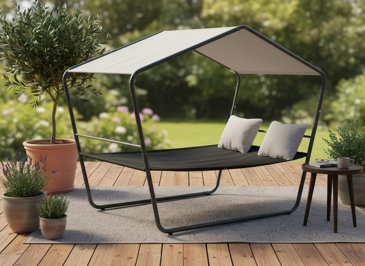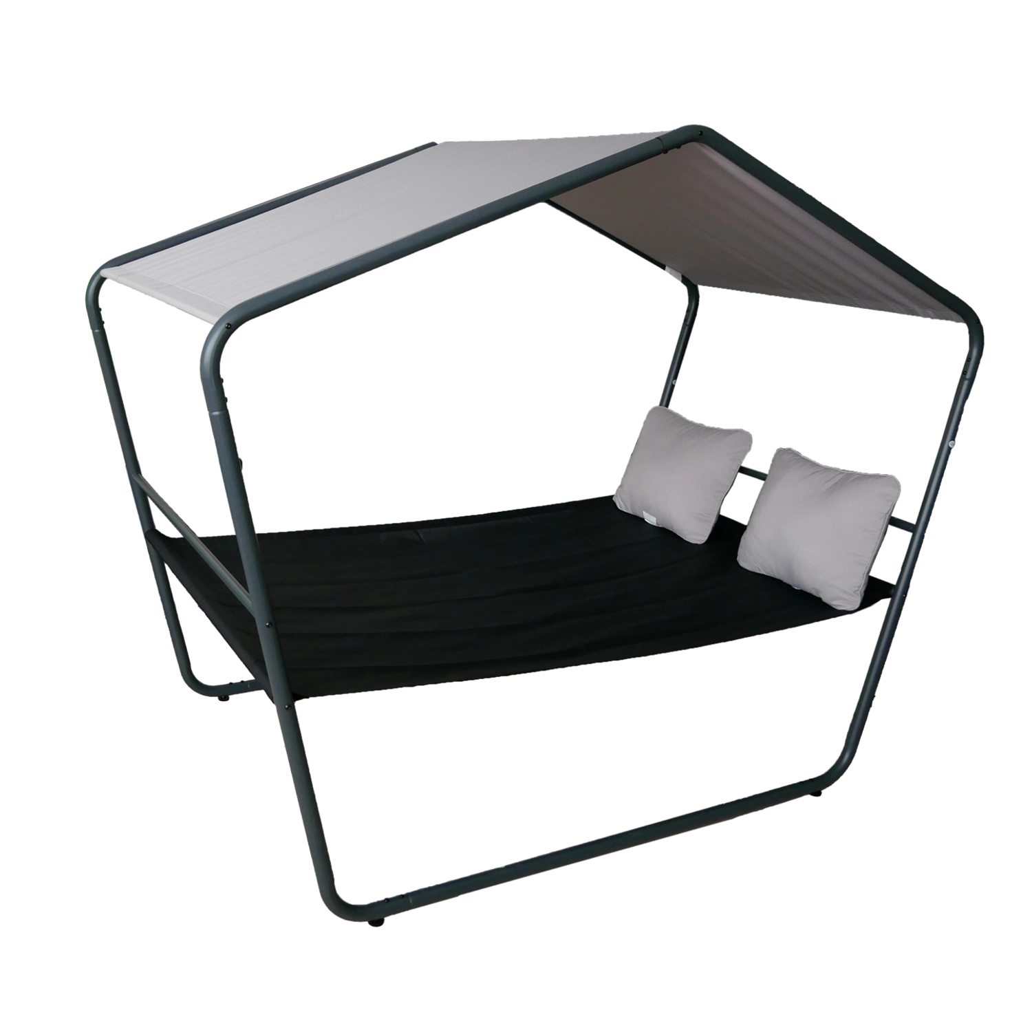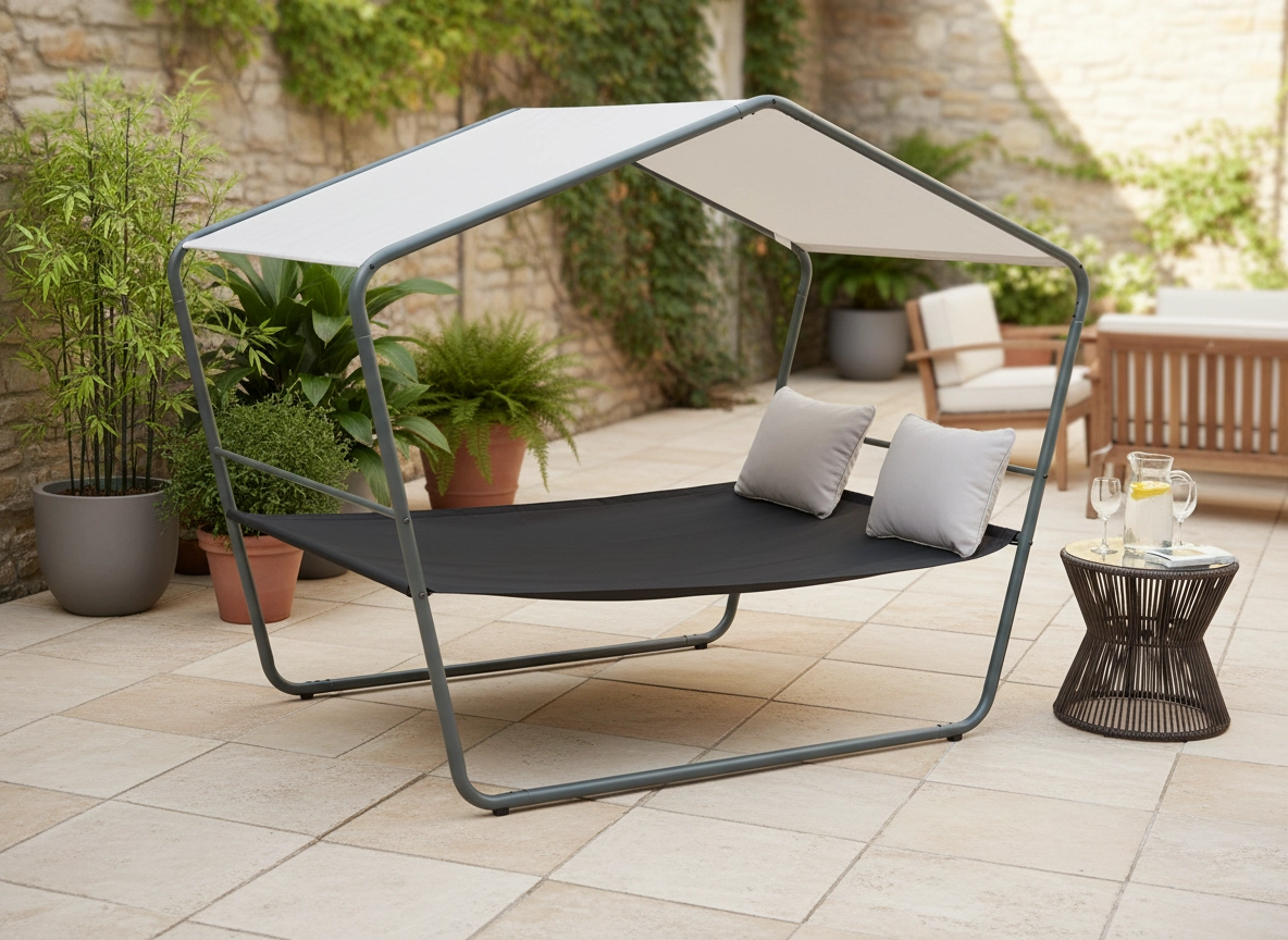 To dvojno vrtno ležišče s strešico bo vašo teraso spremenilo v oazo miru. Stabilna kovinska konstrukcija, zračna mrežasta tkanina Textilene in nastavljiva streha zagotavljajo udobje v vročih dneh in po dežju. S svojim brezčasnim videzom se poda tako sodobnim kot naravnim zunanjim ambientom.