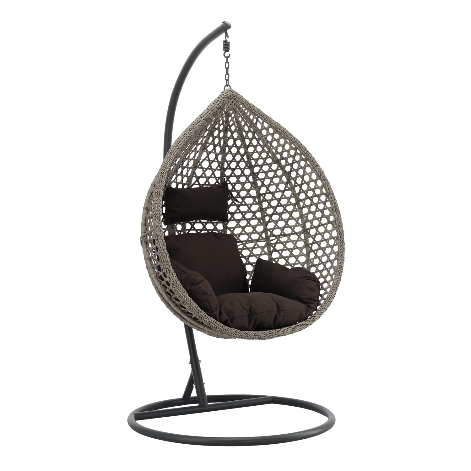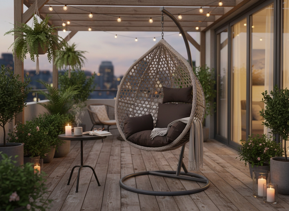 Slogovno viseče stol z enotno sivo barvo prinese na vsako teraso, balkon ali v dnevno sobo mirno vzdušje in udobje. Robustni temno sivi okvir zagotavlja stabilnost in varno zibanje, prostorna košara z mehkimi blazinami pa vabi k počitku. Zahvaljujoč brezčasnemu dizajnu in trpežnim materialom je idealno za relaks in vsakodnevno uporabo doma in na prostem.