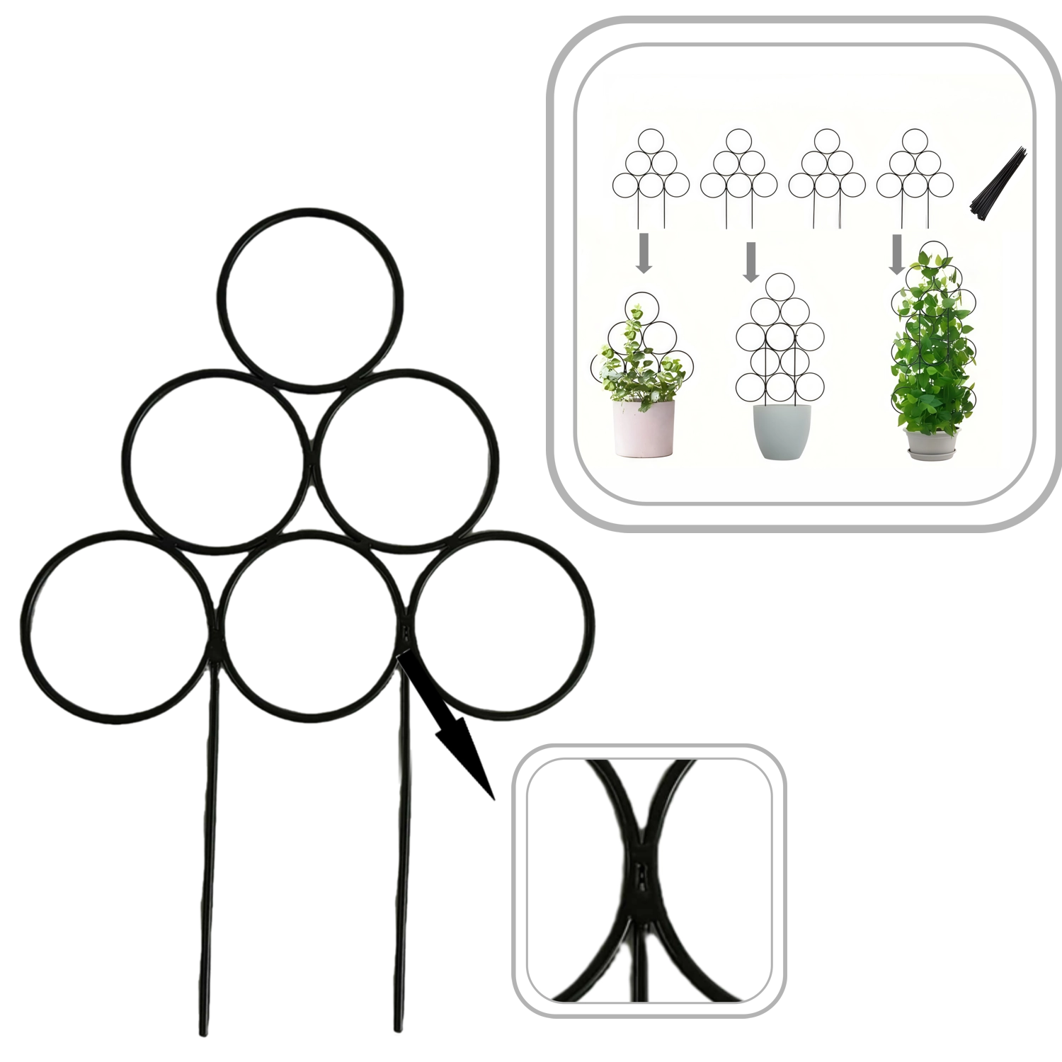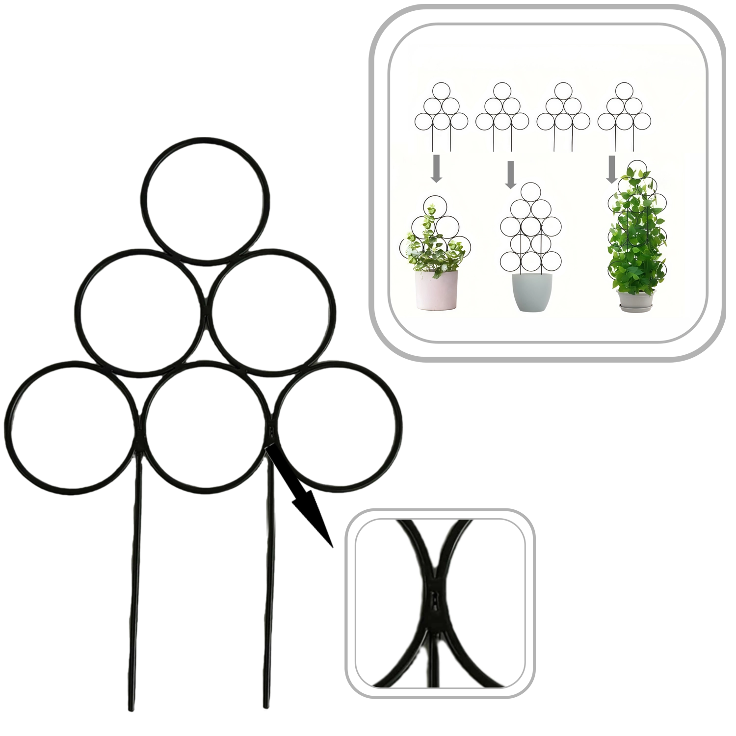 Namestitev je hitra in brez orodja: preprosto jo postavite v lonec in pritrdite poganjke. Kovinski material zagotavlja dolgo življenjsko dobo in trdnost, zato bodo rastline imele zanesljivo oporo tudi v času intenzivne rasti.