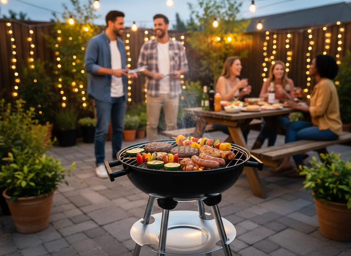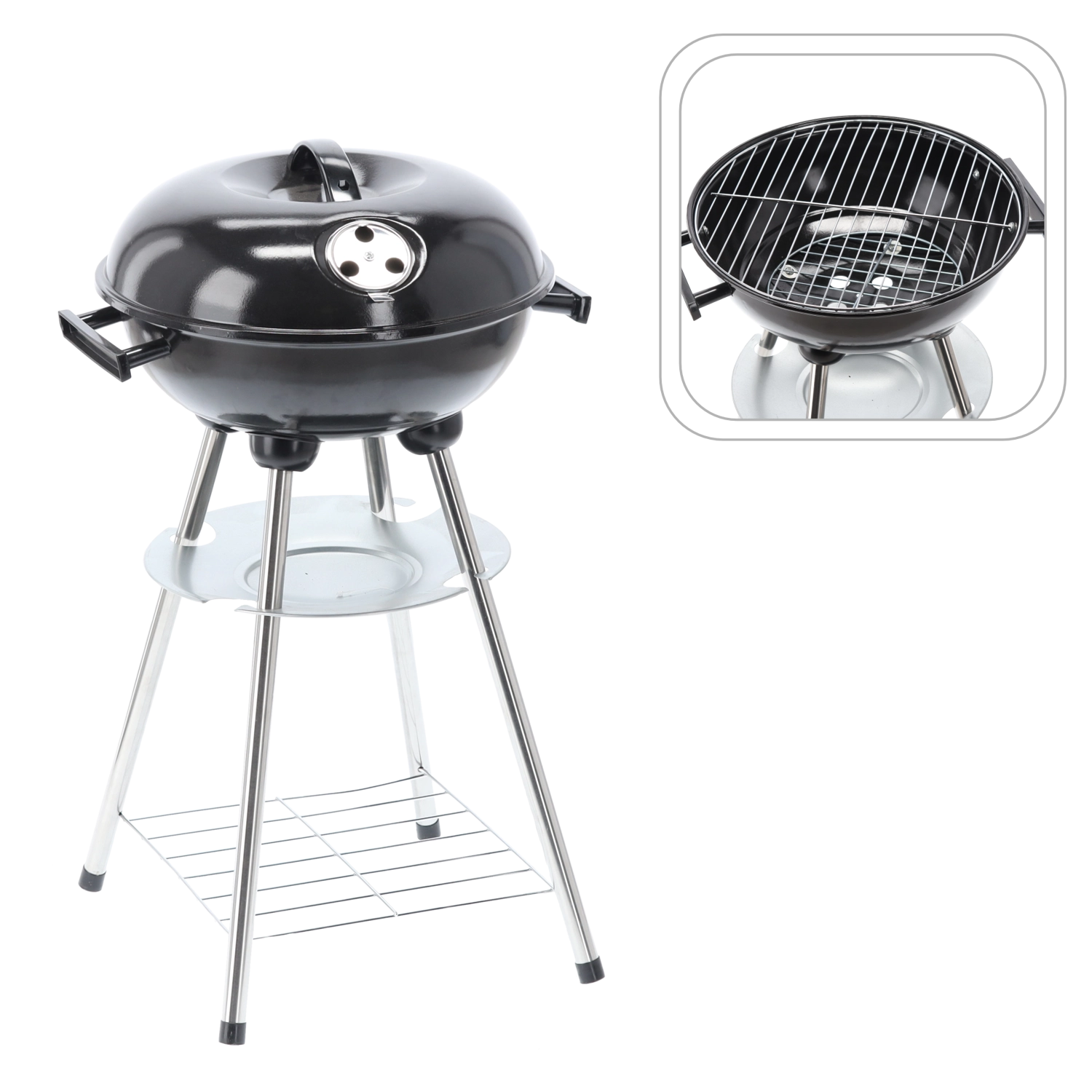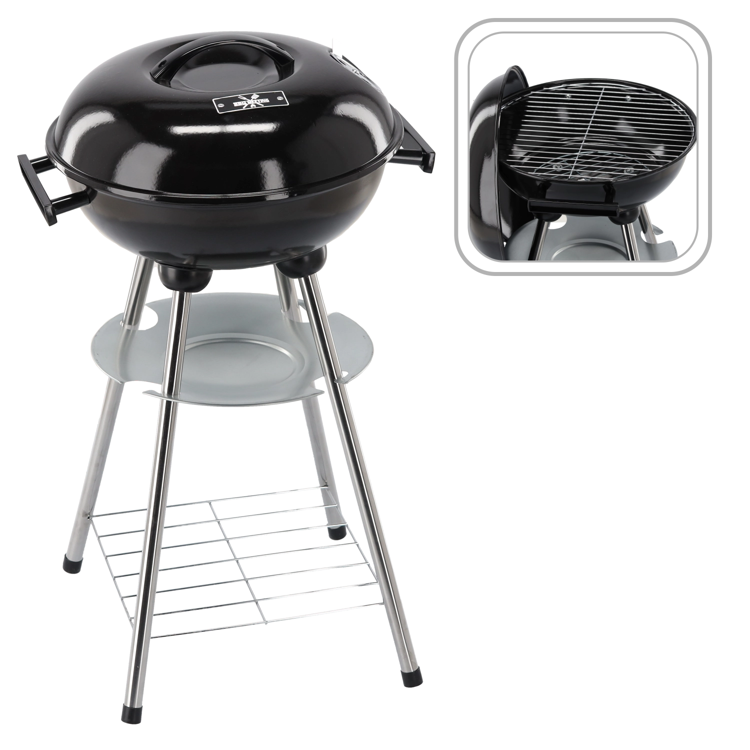 Pokrov z prezračevalnimi odprtinami pomaga ohranjati stabilen žar in širiti toploto s konvekcijo, kar vodi do enakomernega prepekanja. Spodnja odlagalna polica ohranja dodatke pri roki in učvrsti celotno konstrukcijo.