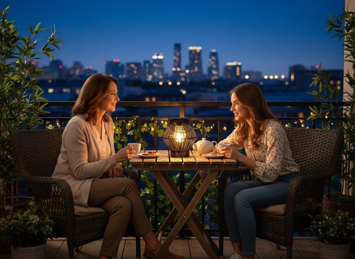 Vgrajena LED žarnica ustvarja prijetno, toplo ambientalno svetlobo, idealno za večerne pogovore, romantične trenutke in vrtna druženja.