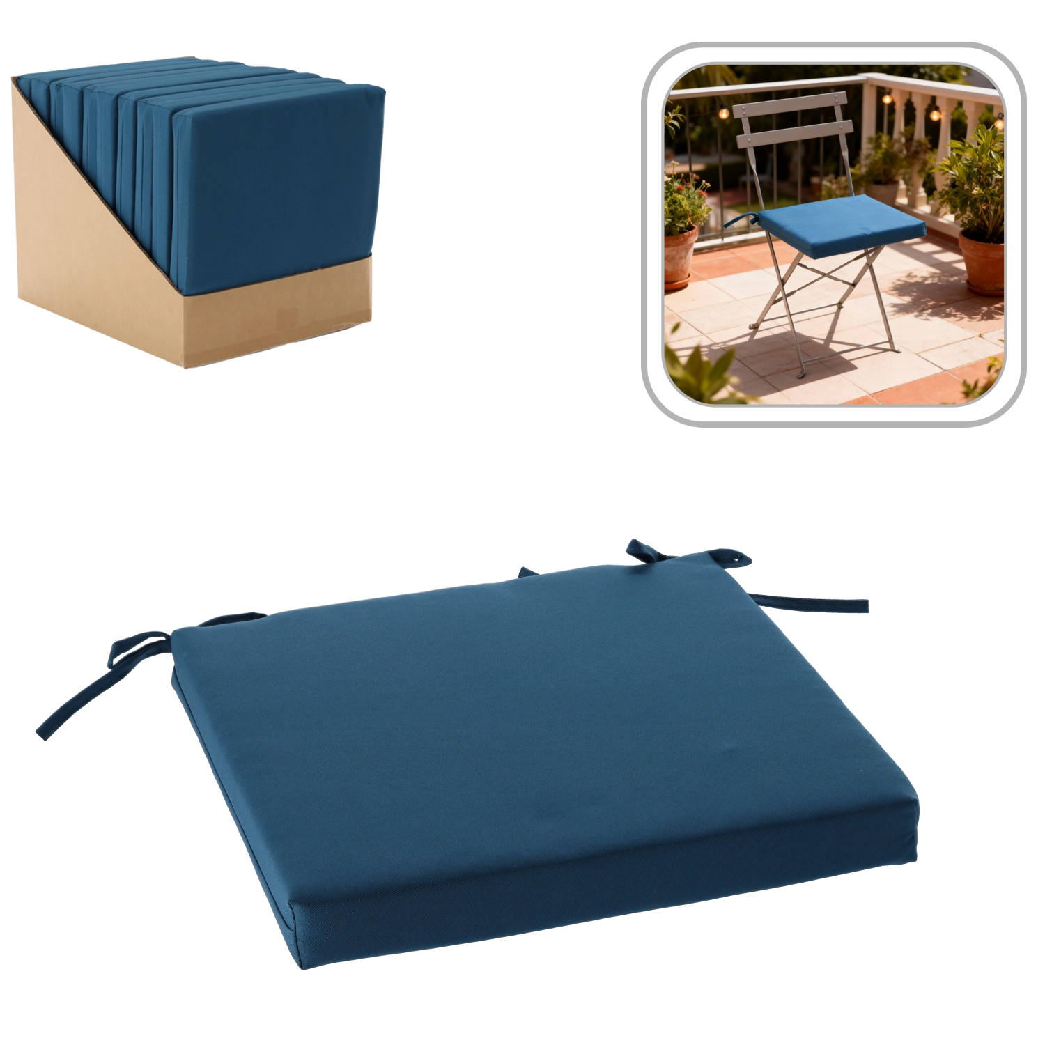 Sedežnik je primeren za večino standardnih stolov zaradi univerzalne dimenzije 40 × 40 × 5 cm. Elegantna modra barva se zlahka poda notranji opremi in vrtni garnituri ter vašemu prostoru doda svež videz.