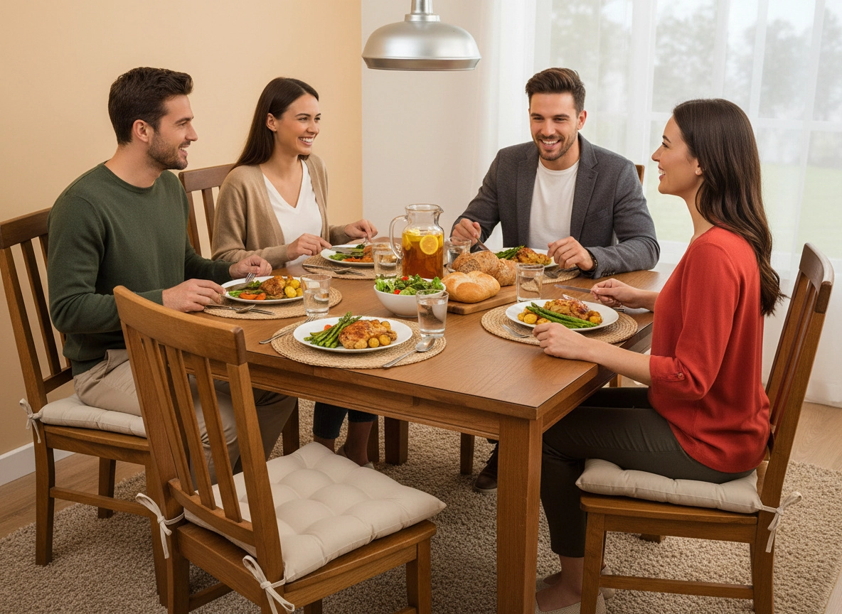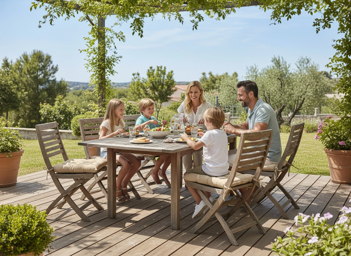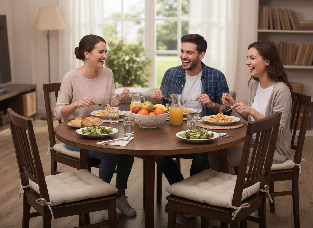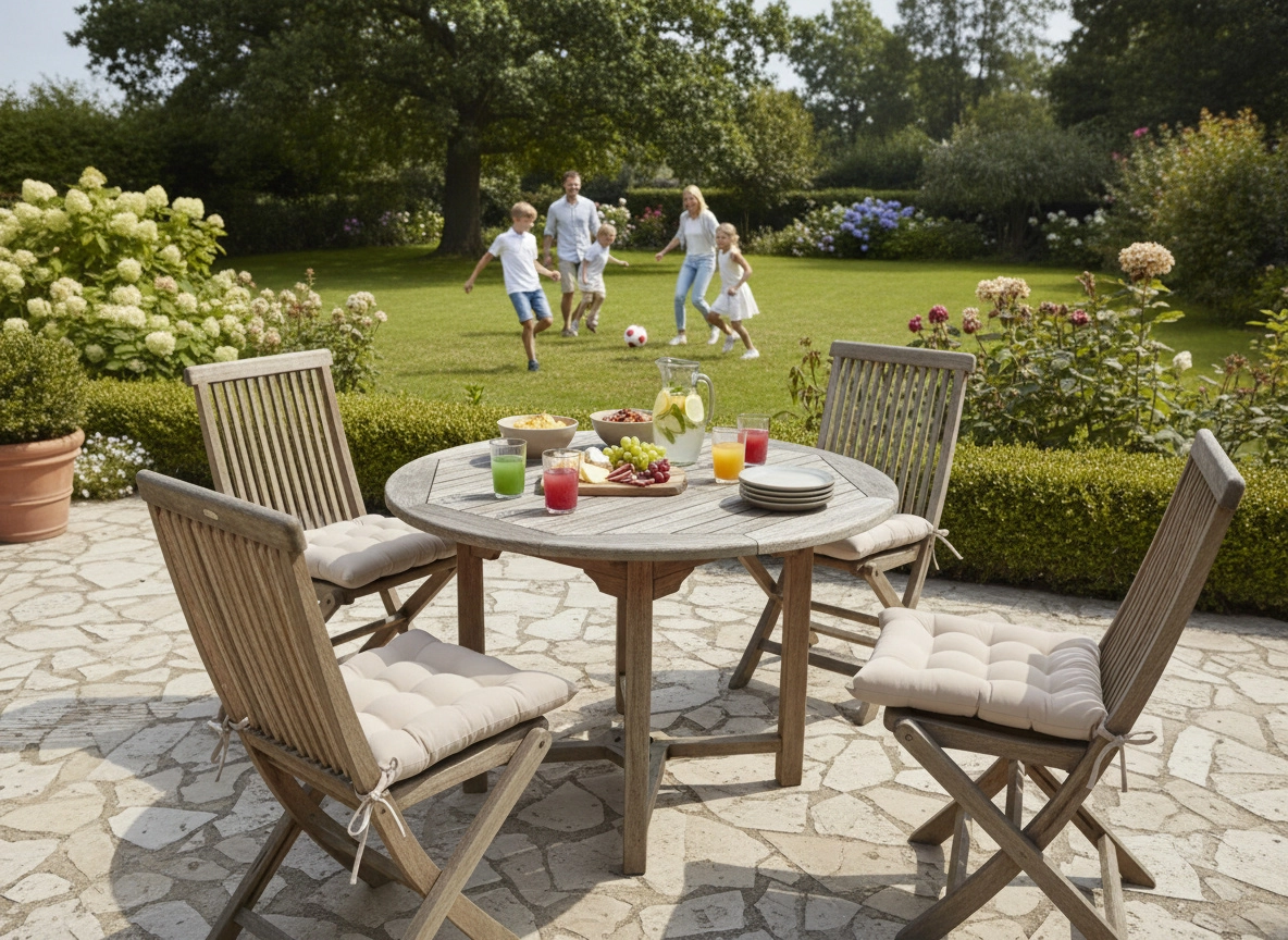 Gosta polnitev iz poliestrskih vlaken zagotavlja udobno in stabilno sedenje brez točk pritiska – idealno za jedilno mizo ali balkon.