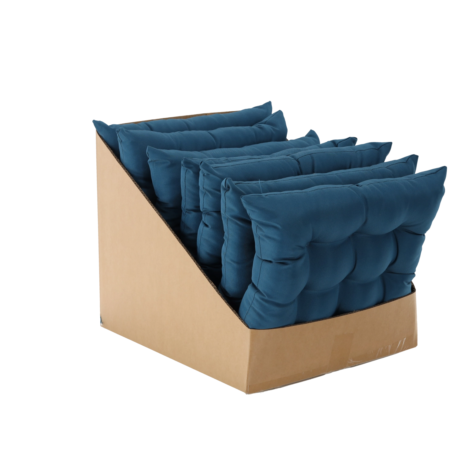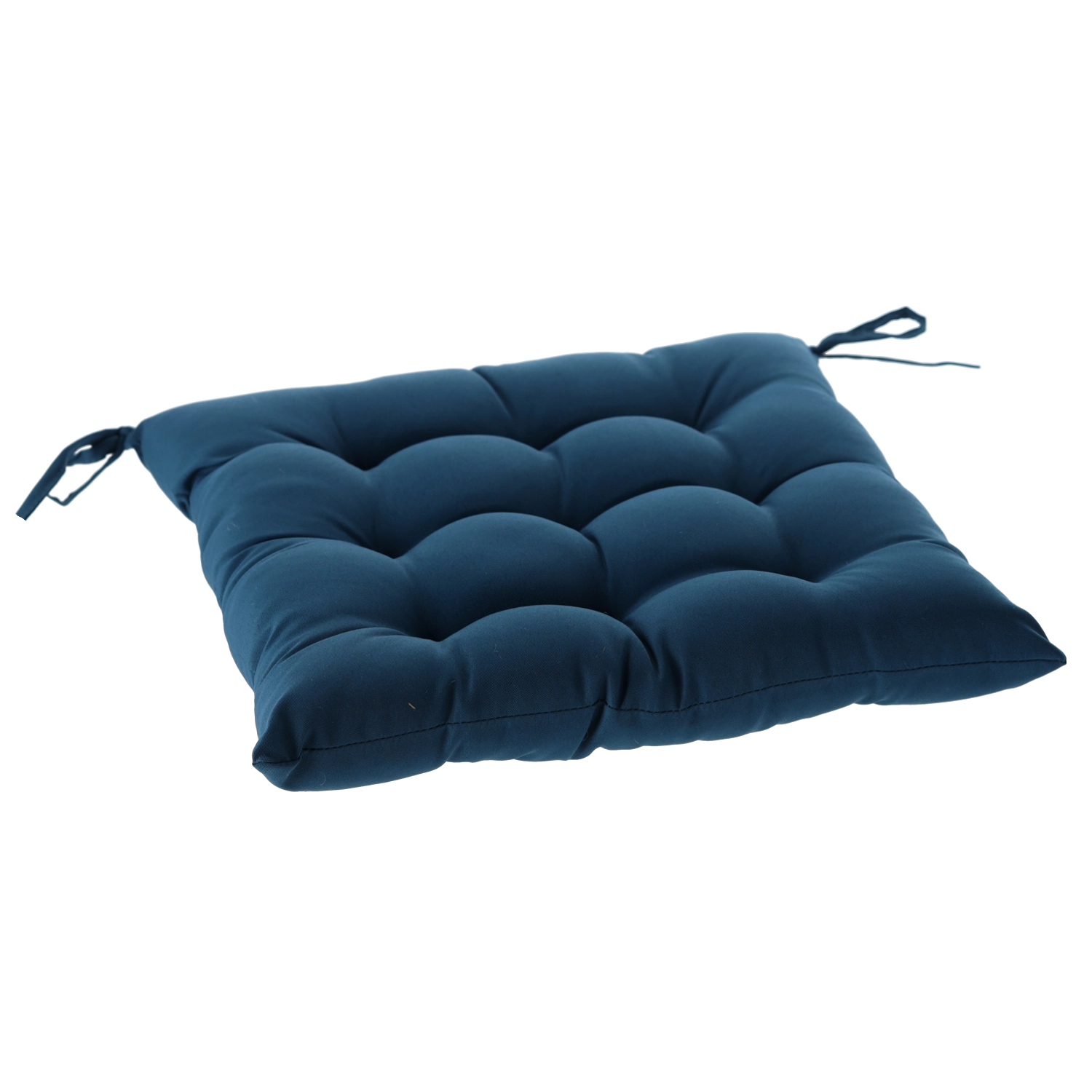 Ta univerzalna sedežna blazina v elegantni modri barvi izboljša udobje pri sedenju za jedilno mizo, na balkonu ali na vrtu. Debelo 6 cm polnilo iz votlih poliestrskih vlaken nudi prijetno oporo, medtem ko 9 točk prešivanja pomaga ohranjati obliko in enakomerno razporeditev polnila.